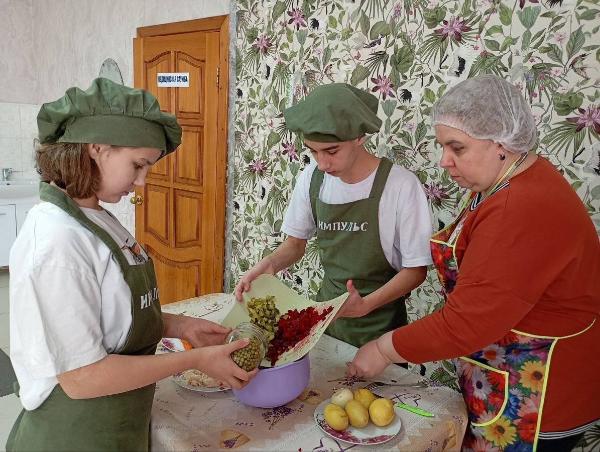 В стационарном отделении Щигровского центра социальной помощи семье и детям «Импульс» состоялся кулинарный поединок. Две команды юных поваров соревновались в приготовлении классических салатов – «Витаминного» и «Винегрета». На кухне кипела работа, звучал смех и советы, разносился аромат свежих овощей.
