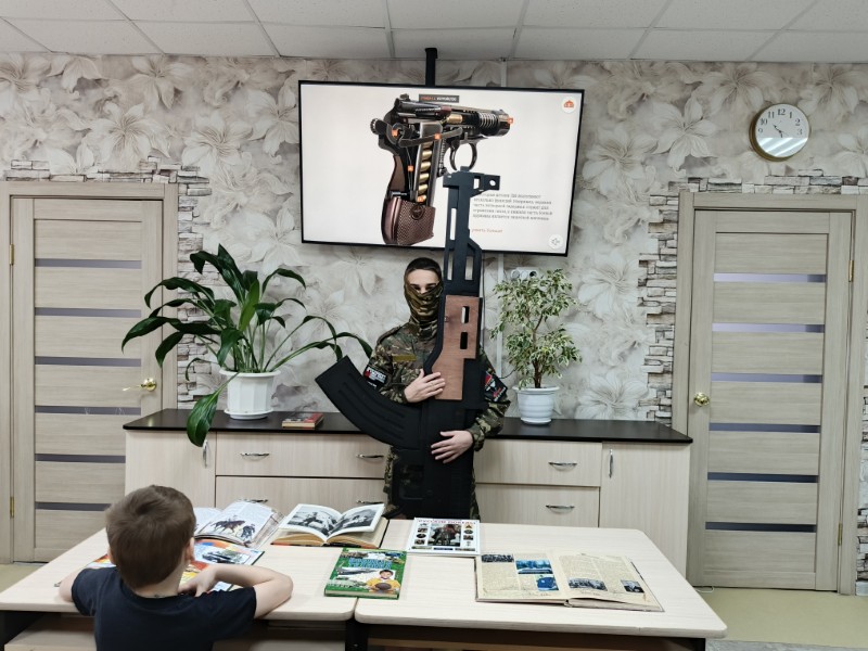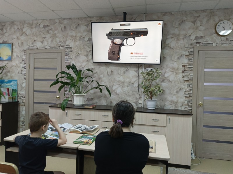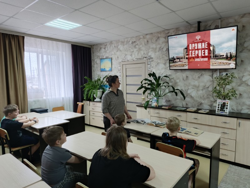 Благодаря современным технологиям ребята «прошлись» по залам знаменитого музея-шлема, не покидая Центра. На большом экране — панорамы с видами легендарных экспонатов: от кремнёвых ружей тульских кузнецов до современного оружия.