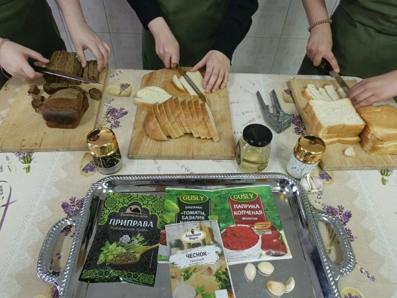 Процесс увлёк каждого: нарезка батона ровными брусочками, приготовление ароматной заправки, сушка в духовке до золотистой корочки.