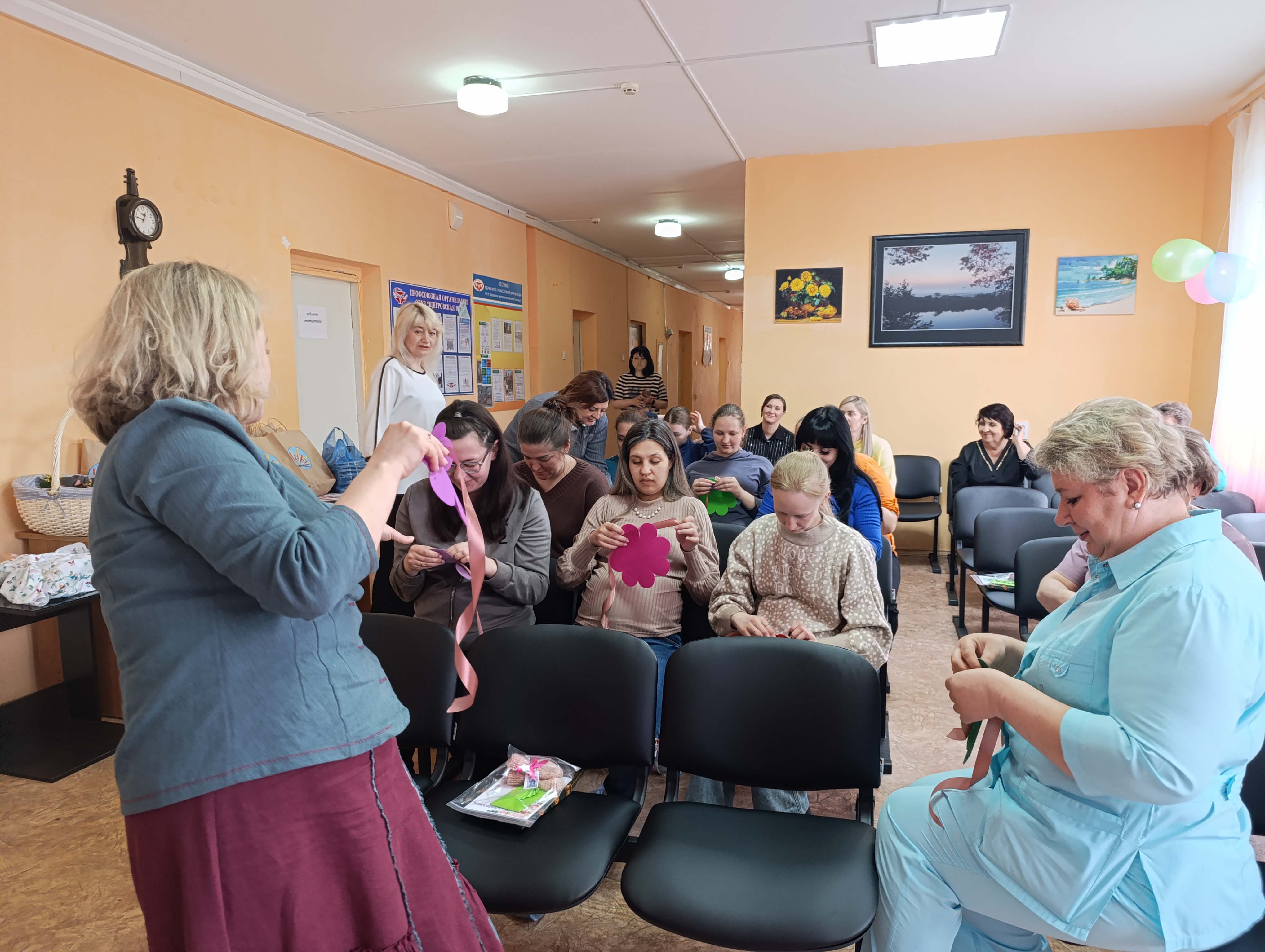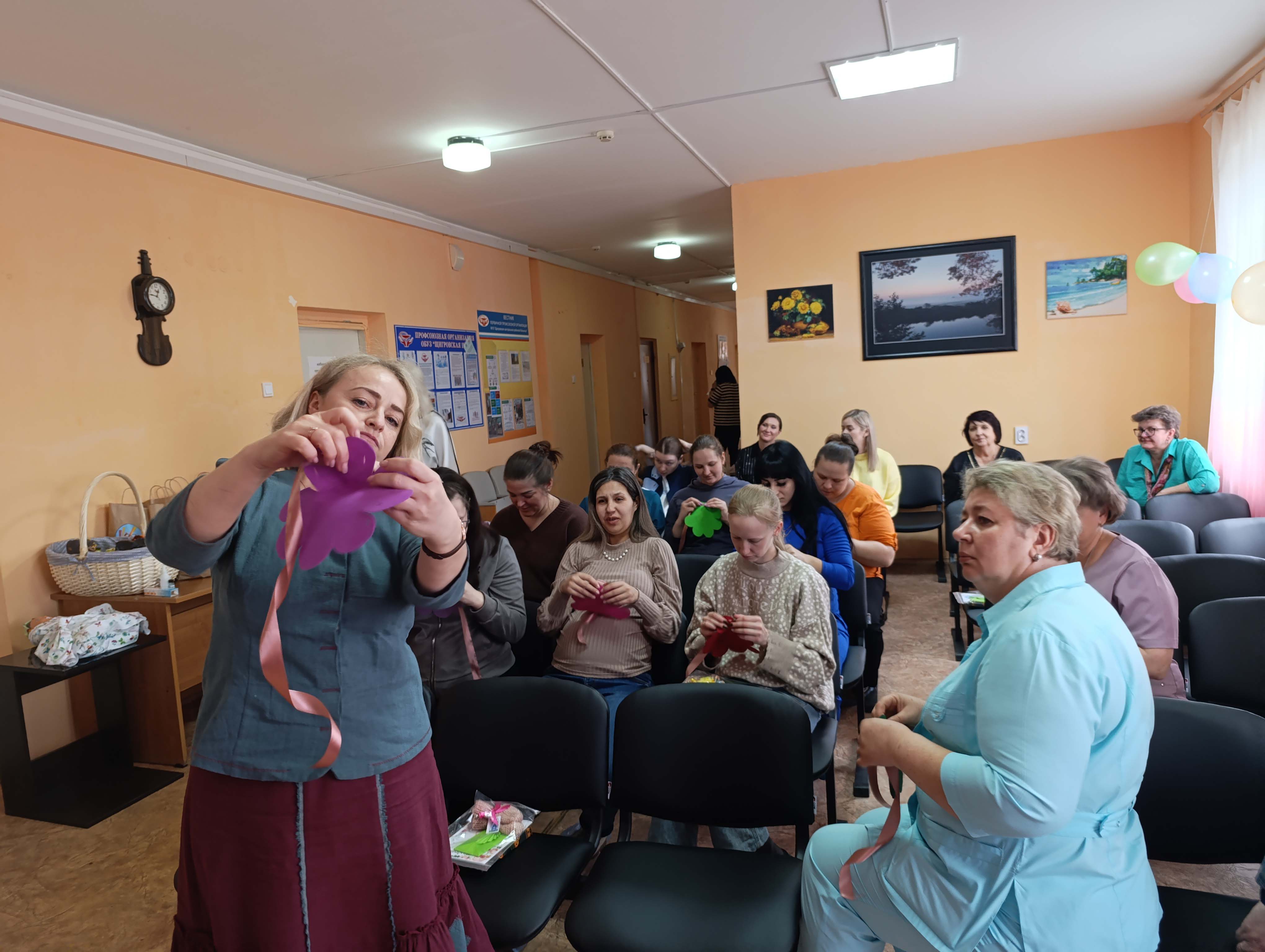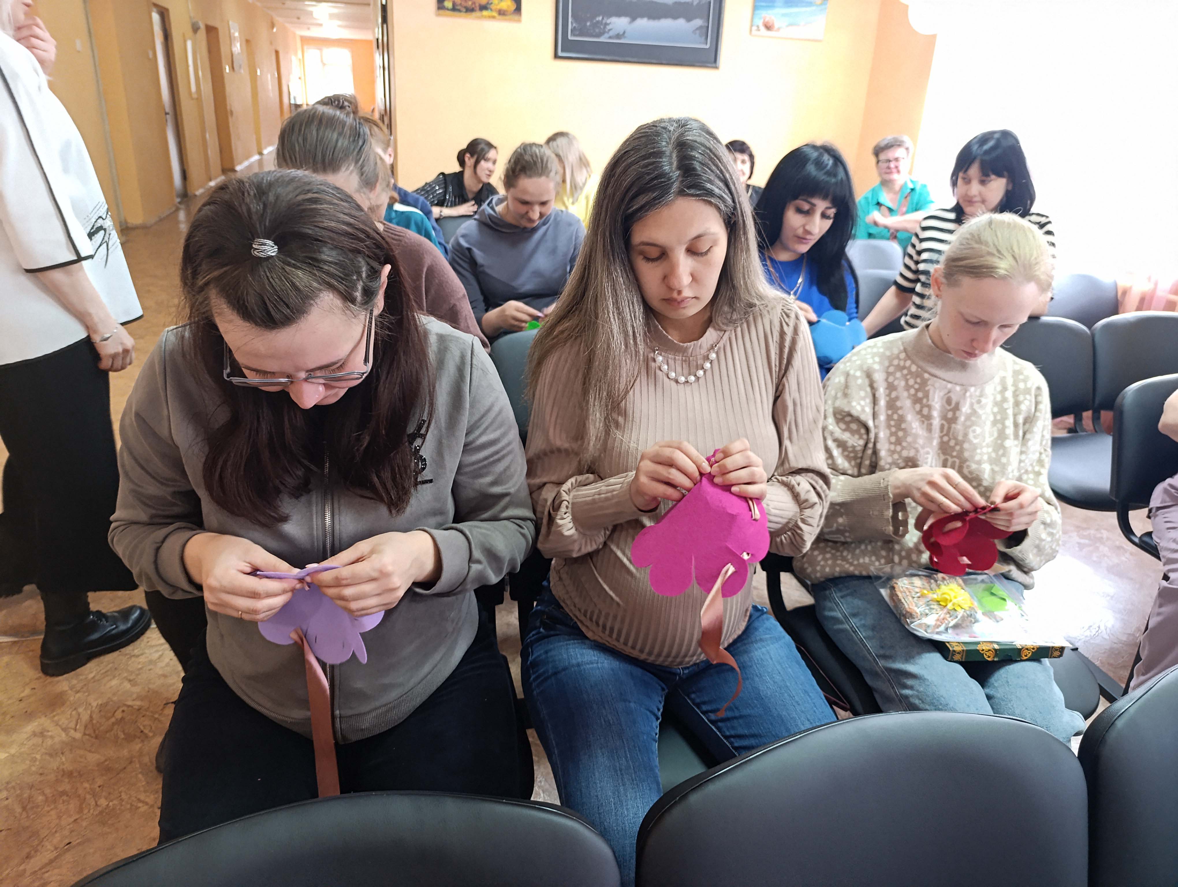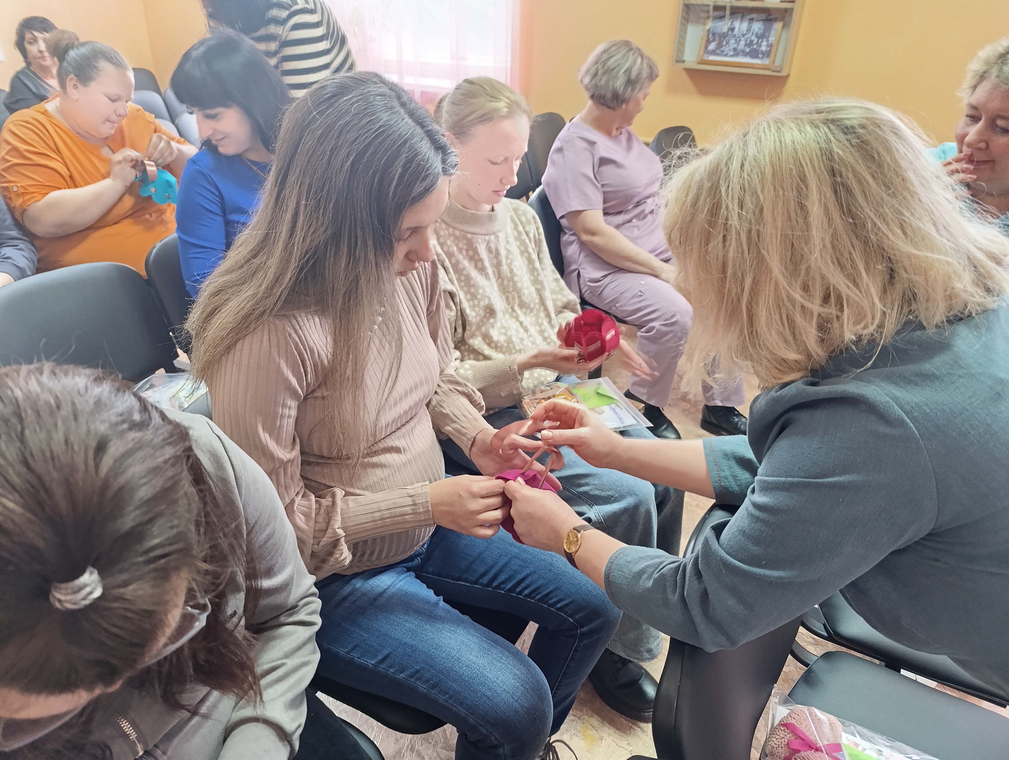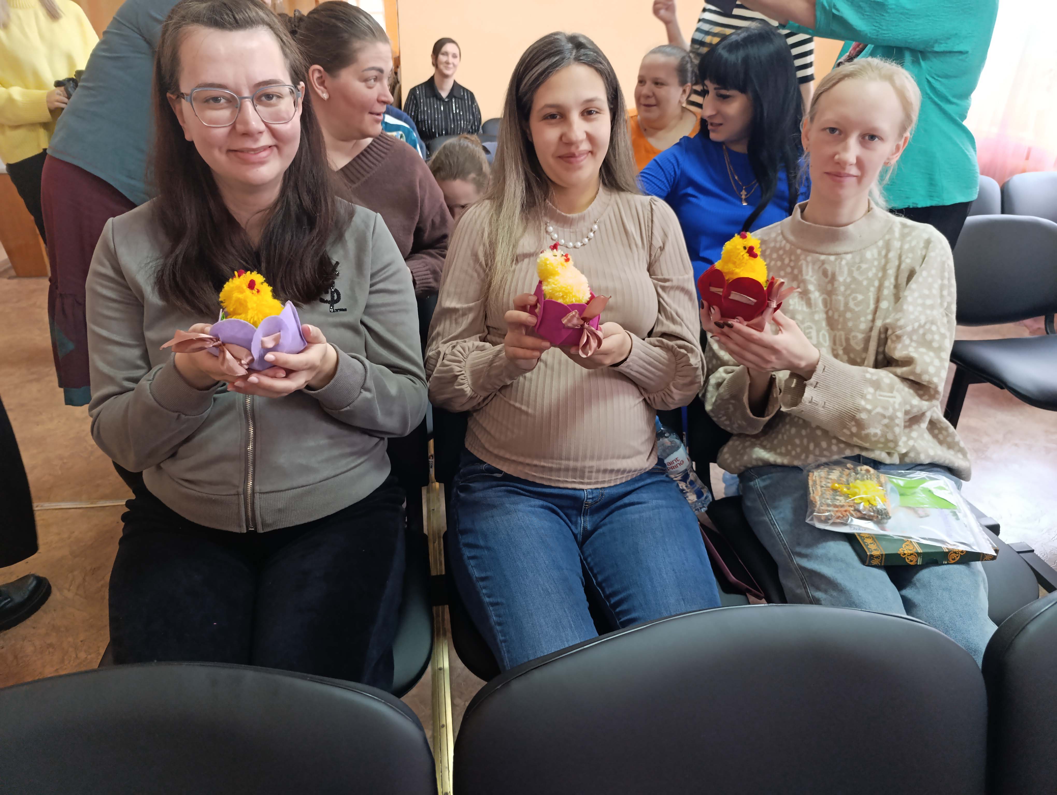 А потом началось самое интересное — мастер-классы. Под чутким руководством специалистов Центра они создавали маленькие корзиночки с цыпленком- символом новой жизни, тепла и весны. У каждой получился свой — разный, но одинаково трогательный.