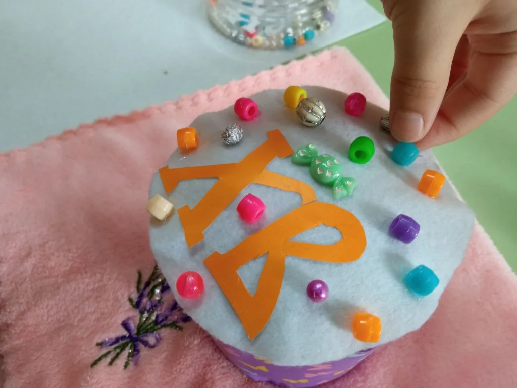 В младшей группе Щигровского центра «Импульс» прошел творческий урок. Наши маленькие воспитанники учились украшать «Пасхальный кулич», но не настоящий, а сделанный из мягкого фетра!