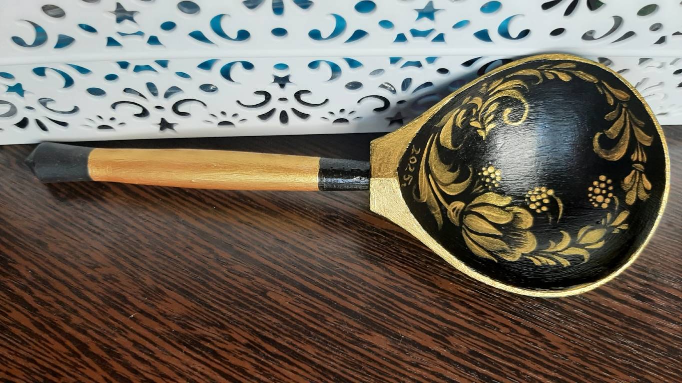7.Лакирование — это заключительный и очень важный этап в росписи по дереву, защищающий от механических повреждений и влаги, придает блеск и глубину готовому изделию.