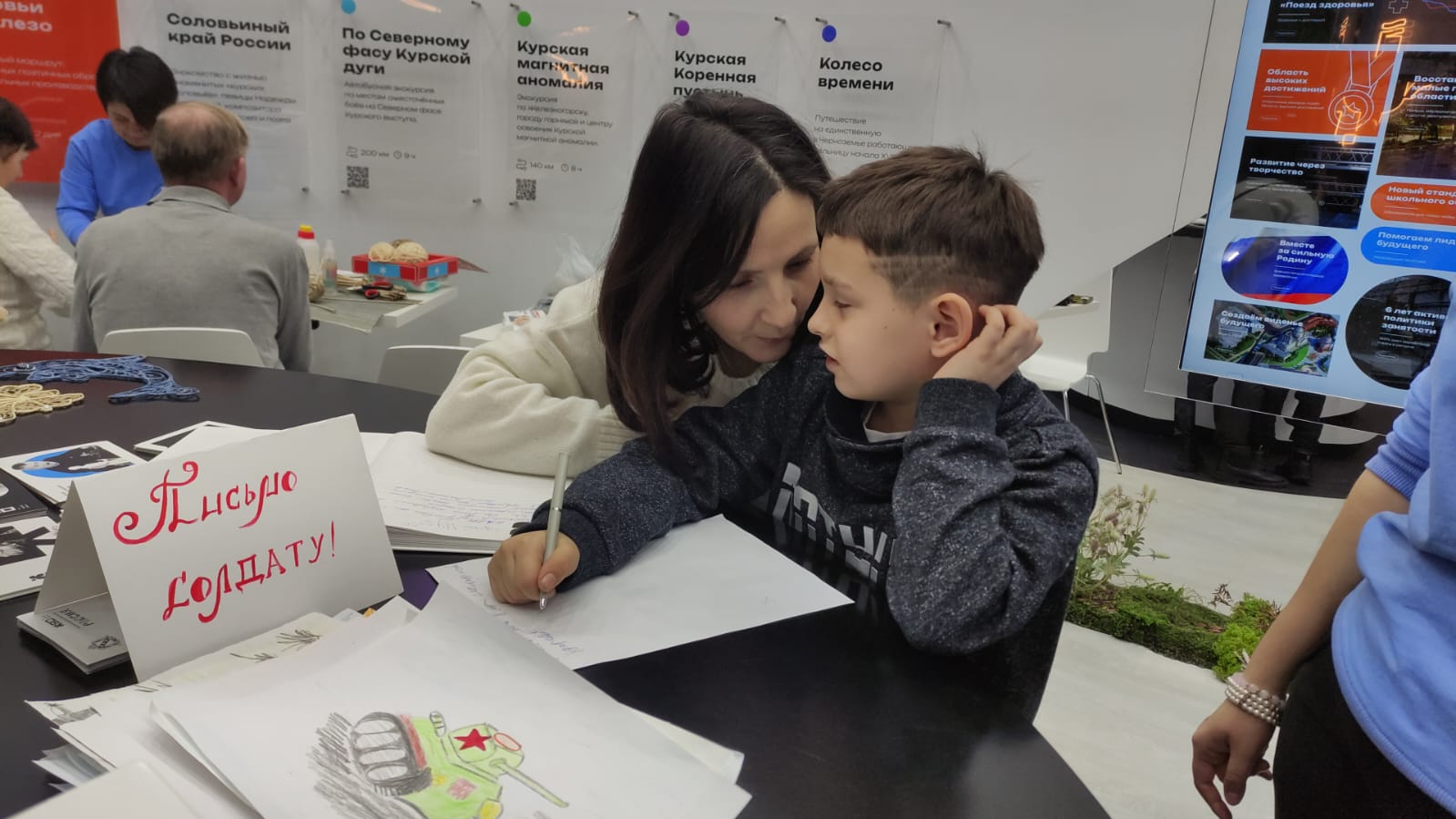 На  форуме гости совместно со специалистами пишут  «Письмо  солдату» со словами  поддержки и  теплыми  пожеланиями, которые  будут  переданы военнослужащим – участникам СВО.