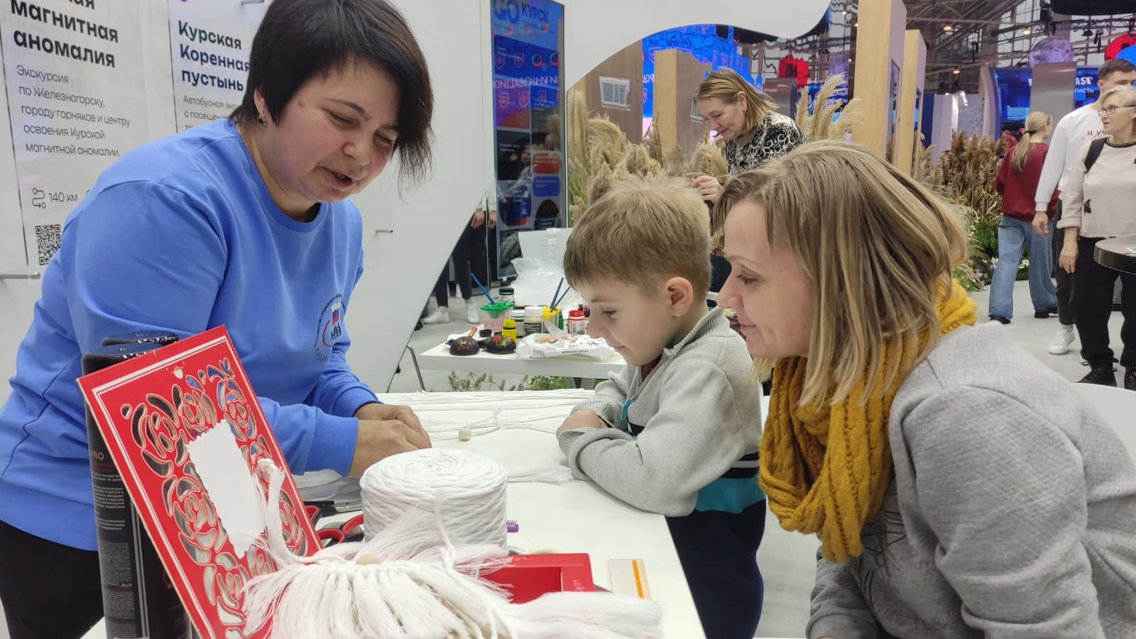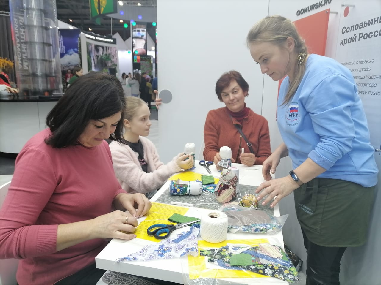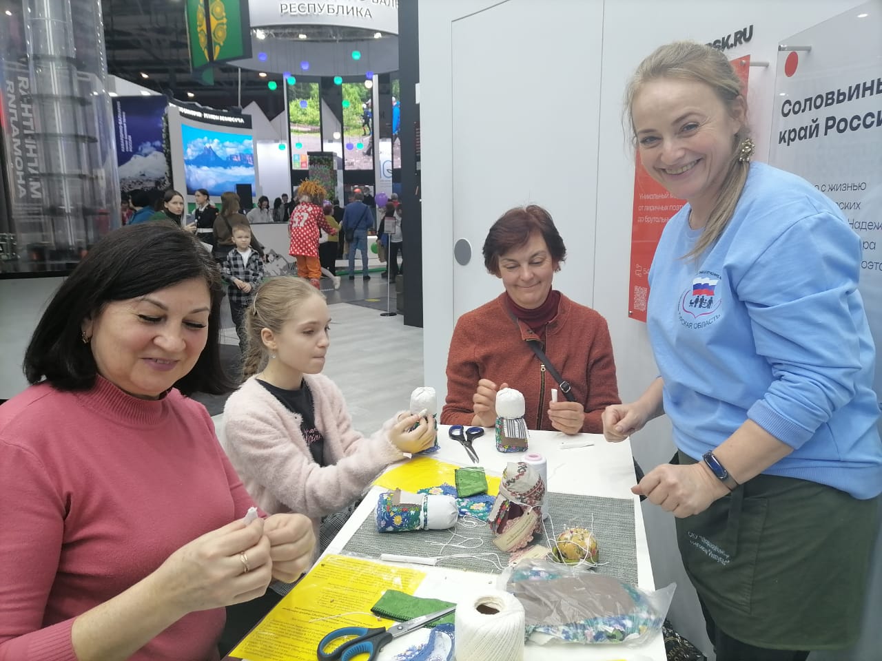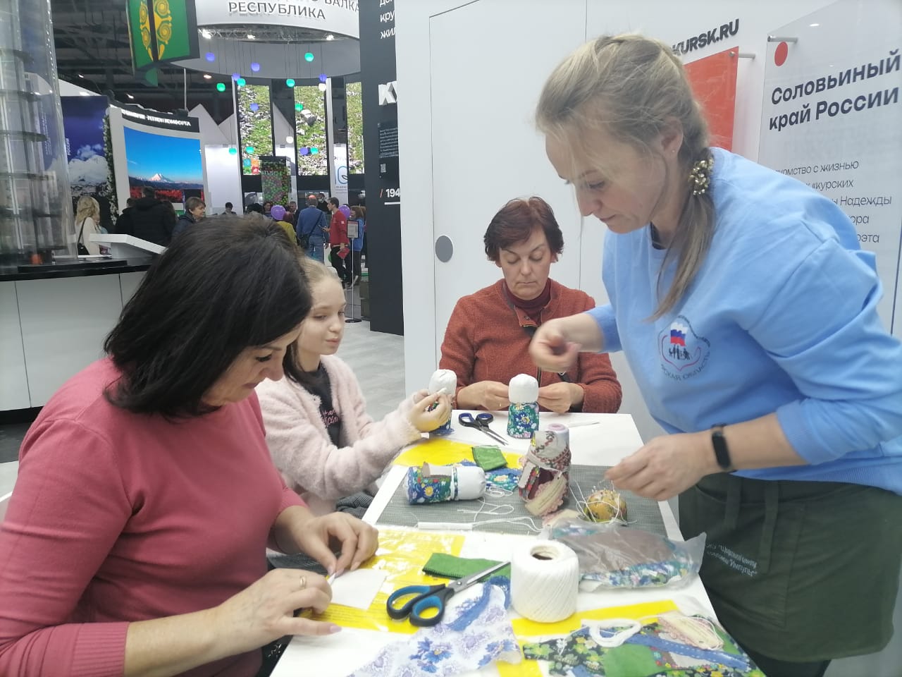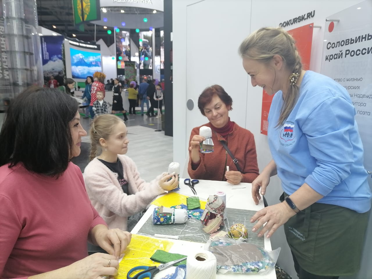 Специалисты ОКУ «Щигровский центр социальной помощи семье и детям «Импульс» Конова Юлия Владимировна, Гатилова Ирина Александровна и  Солосенкова Елена  Петровна под руководством директора Борзенков Сергей Иванович снова работают на Форуме национальных достижений: социальная  политика в  интересах детства выставки выстаки-форума Россия на  ВДНХ.  В зоне культурной программы  Центром представлены мастер-классы: роспись деревянных ложек акриловыми красками «Хохлома», «Плетение из бумажной лозы», «Кукла-оберег «Зерновушка», «Ангел в технике макраме», «Джутовая филигрань».