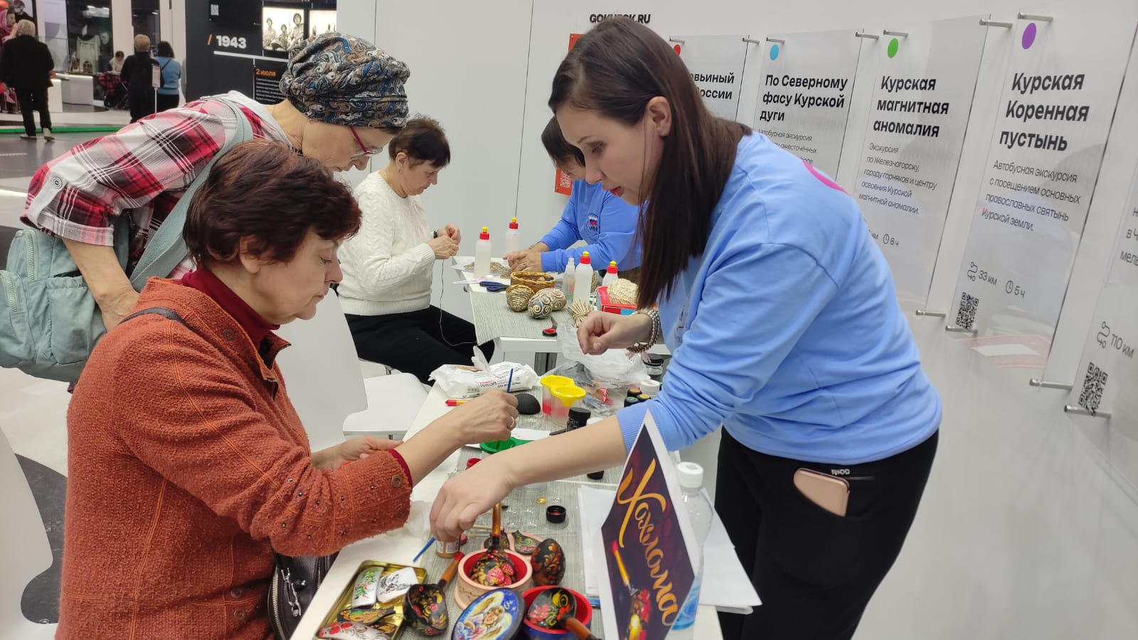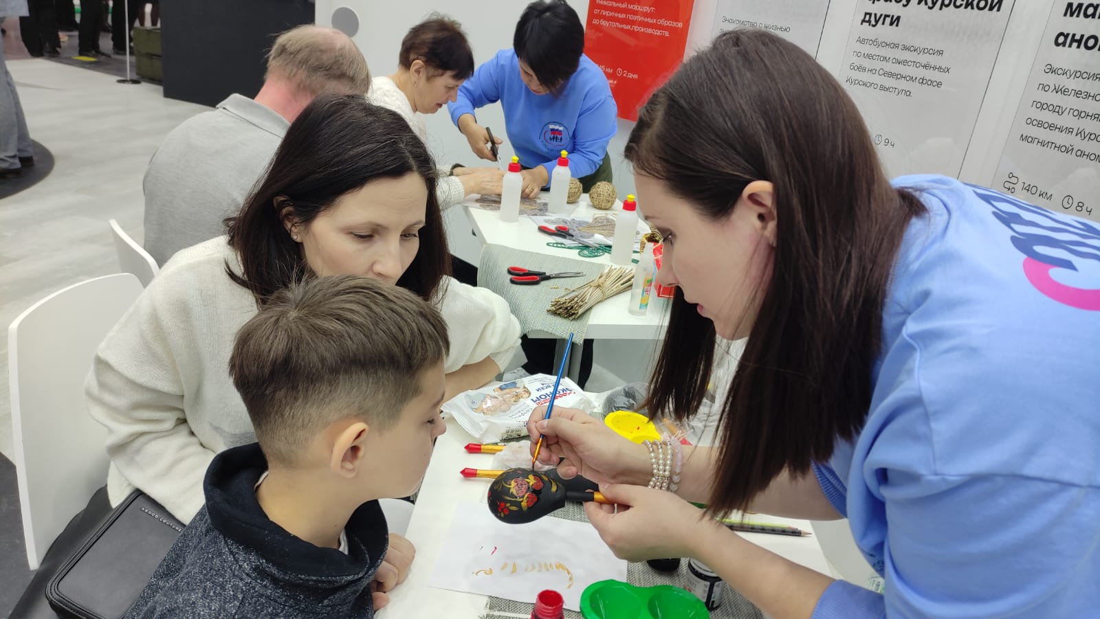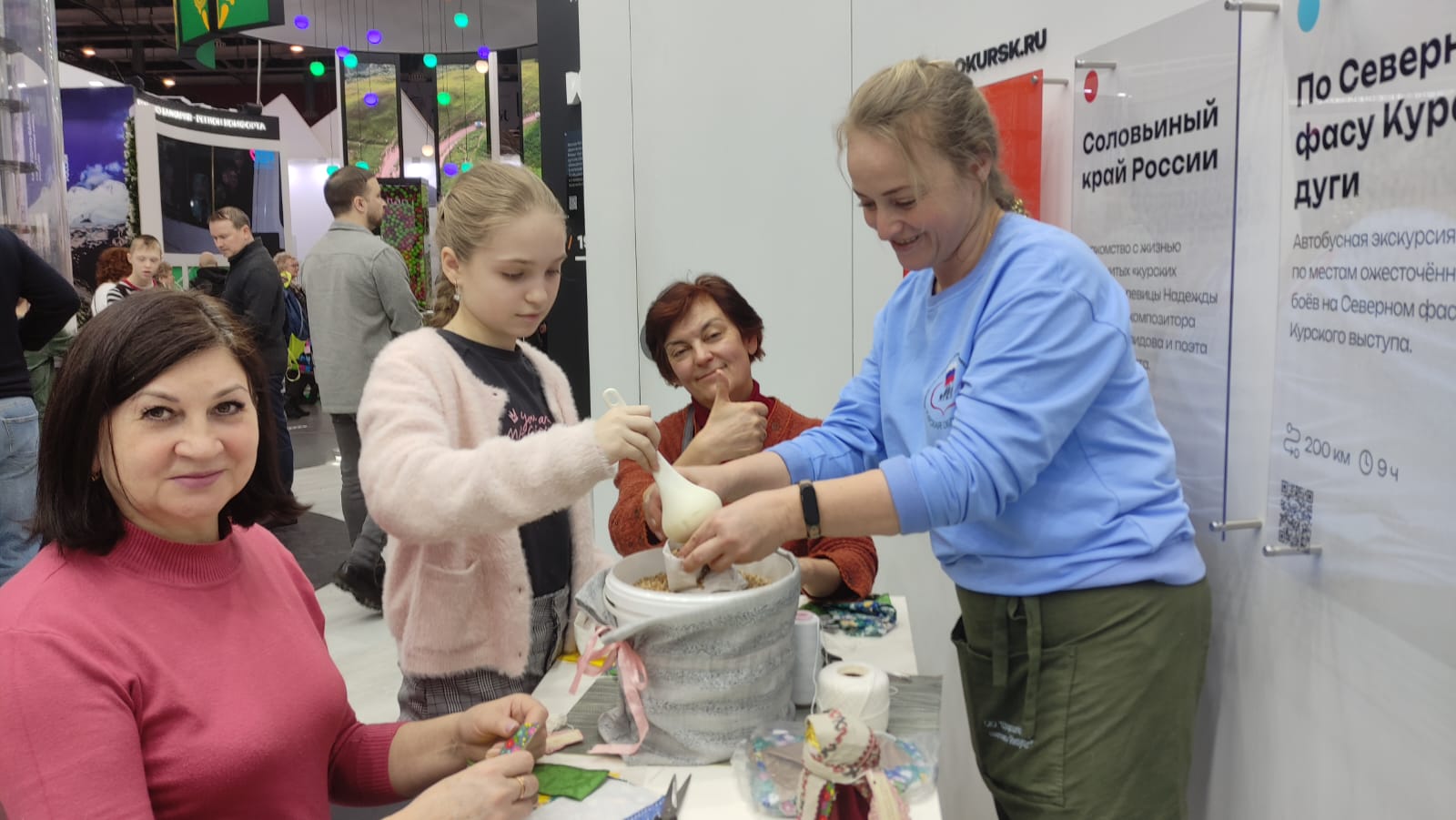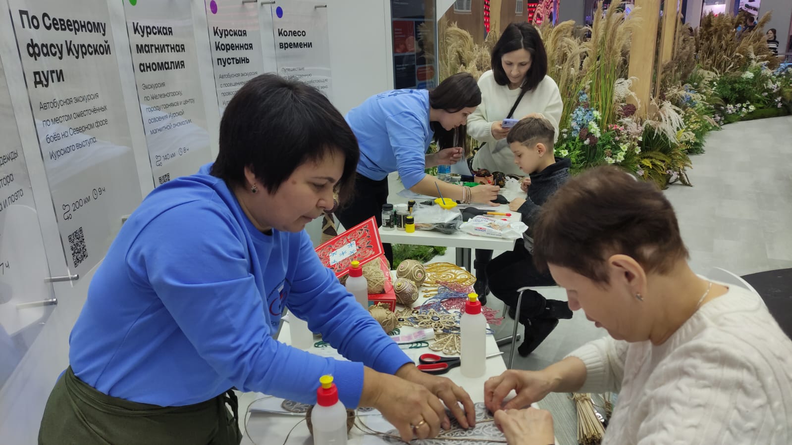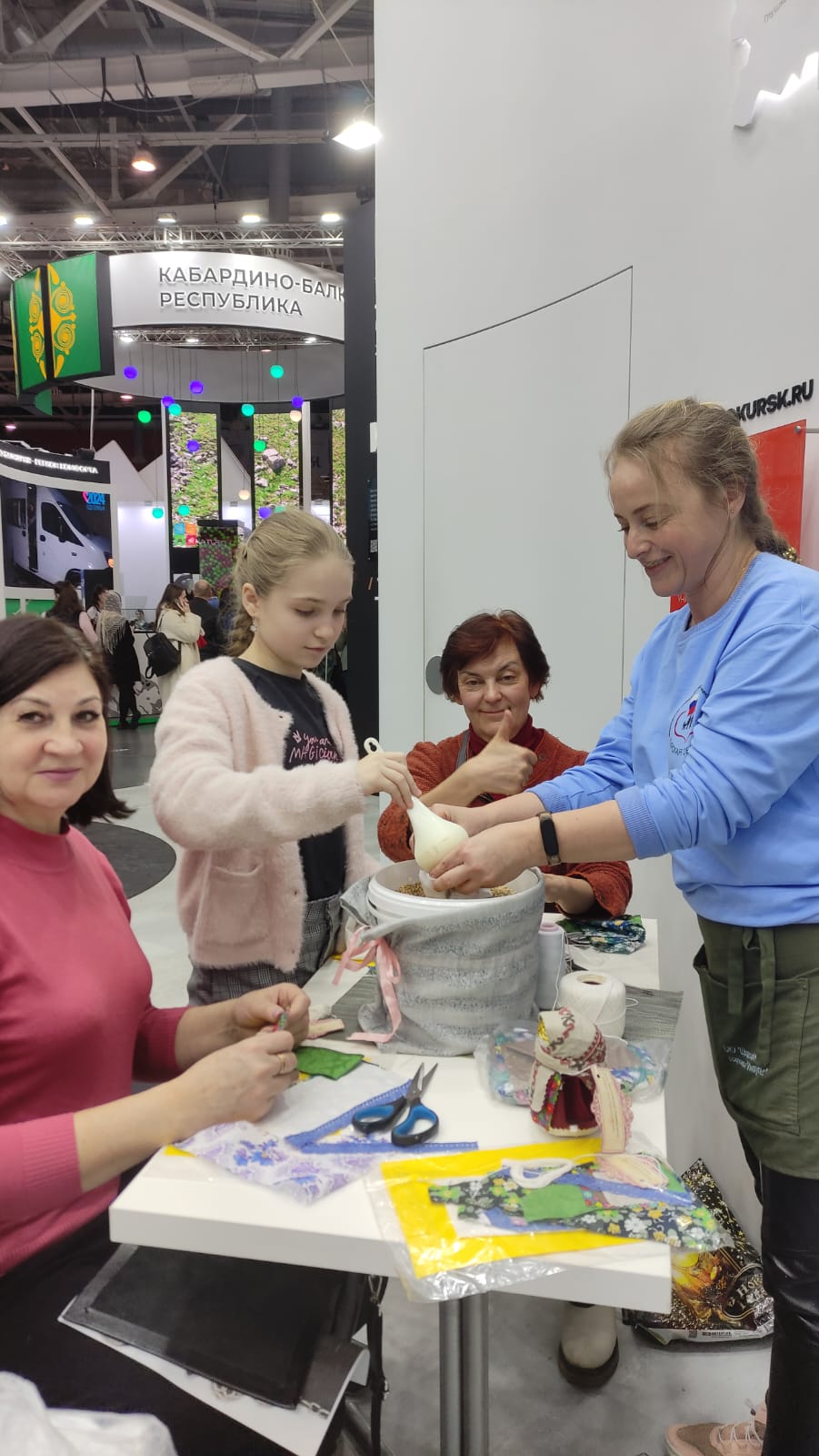 Специалисты ОКУ «Щигровский центр социальной помощи семье и детям «Импульс» Конова Юлия Владимировна, Гатилова Ирина Александровна и  Солосенкова Елена  Петровна под руководством директора Борзенков Сергей Иванович снова работают на Форуме национальных достижений: социальная  политика в  интересах детства выставки выстаки-форума Россия на  ВДНХ.  В зоне культурной программы  Центром представлены мастер-классы: роспись деревянных ложек акриловыми красками «Хохлома», «Плетение из бумажной лозы», «Кукла-оберег «Зерновушка», «Ангел в технике макраме», «Джутовая филигрань».