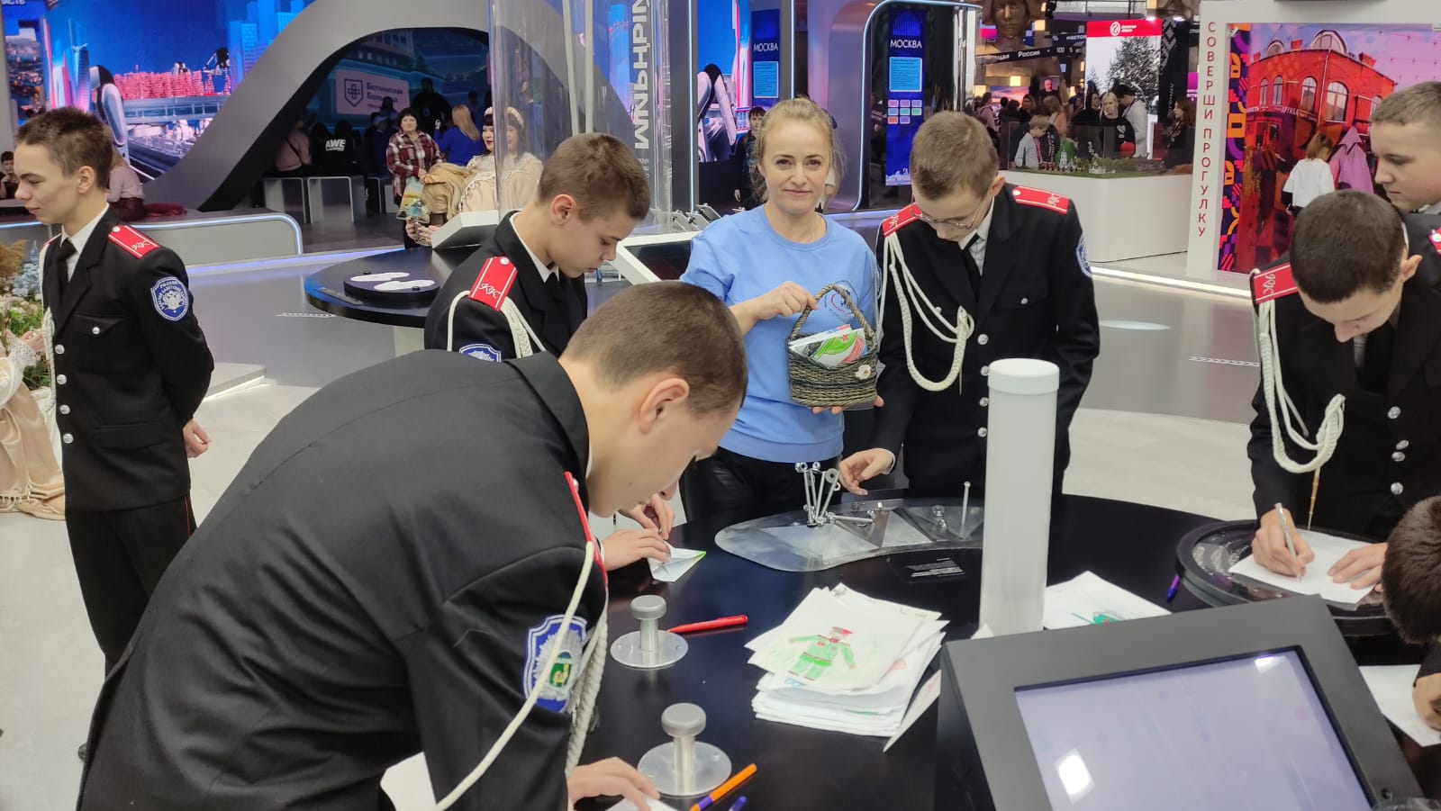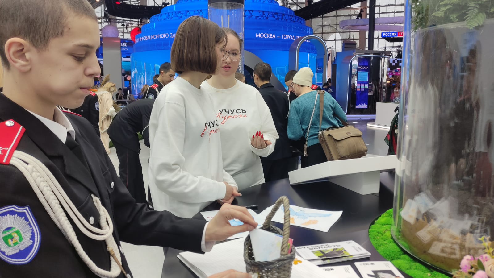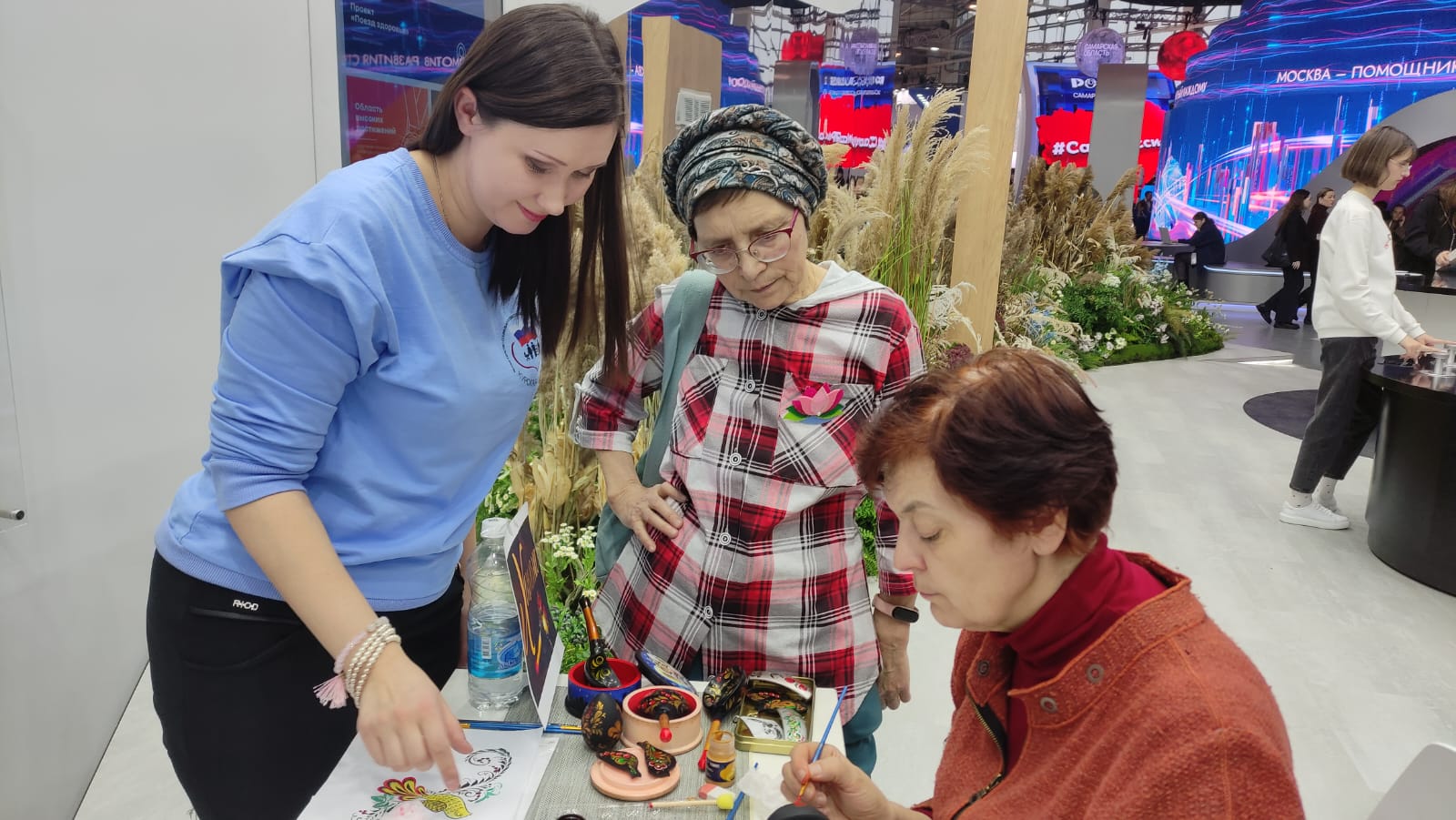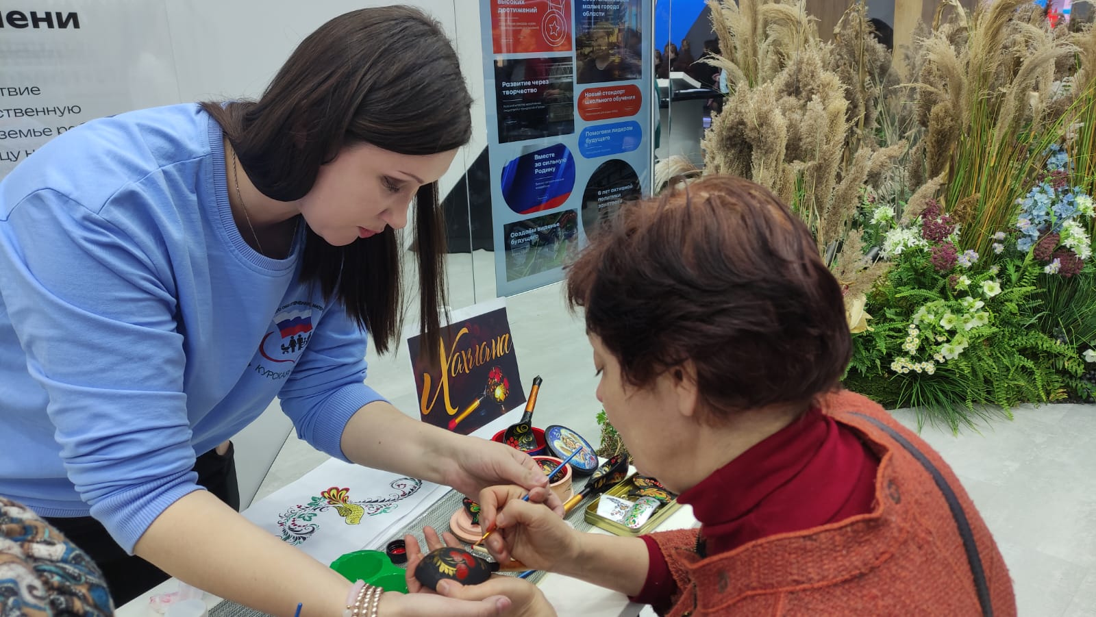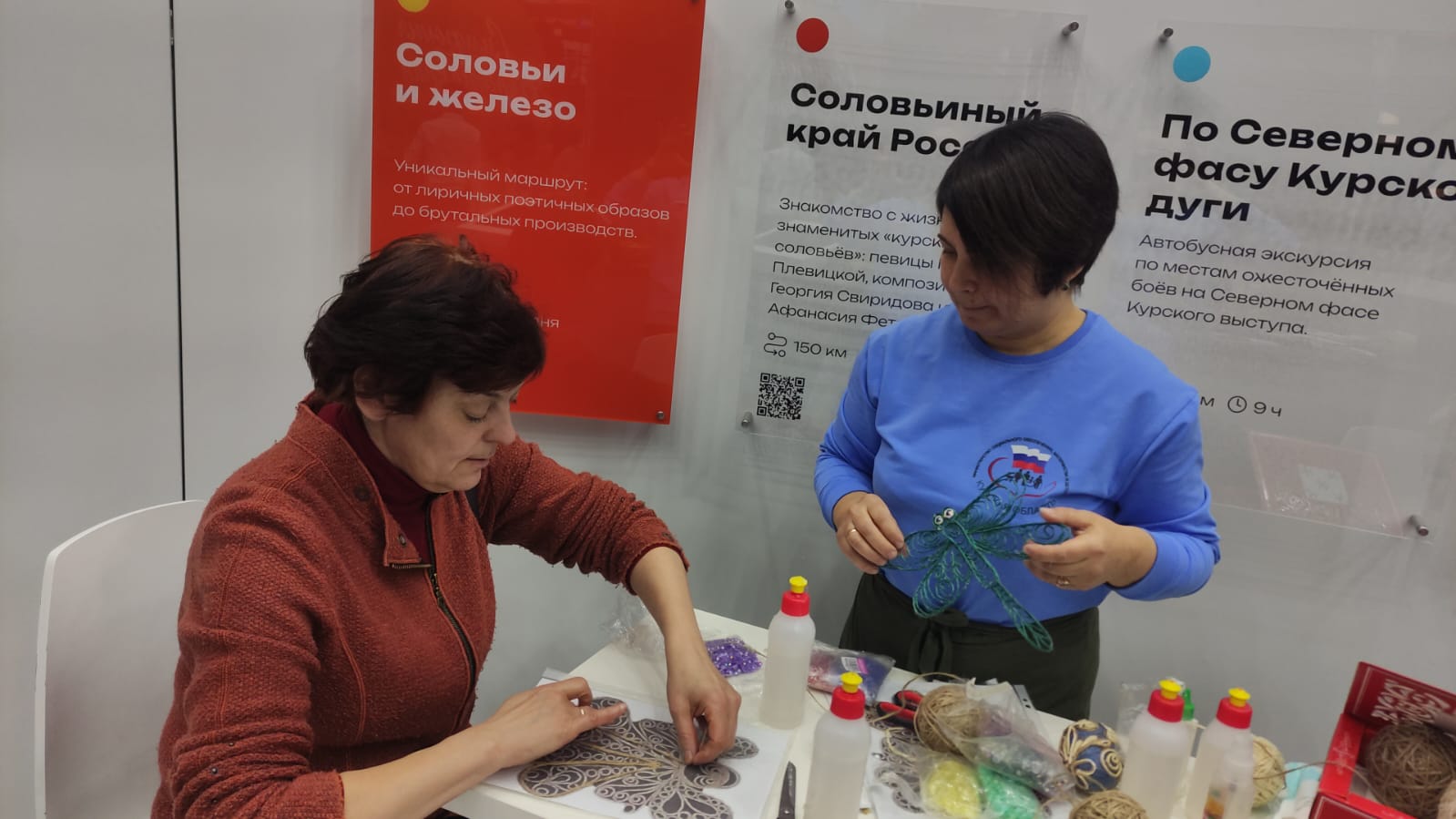 Специалисты ОКУ «Щигровский центр социальной помощи семье и детям «Импульс» Конова Юлия Владимировна, Гатилова Ирина Александровна и  Солосенкова Елена  Петровна под руководством директора Борзенков Сергей Иванович снова работают на Форуме национальных достижений: социальная  политика в  интересах детства выставки выстаки-форума Россия на  ВДНХ.  В зоне культурной программы  Центром представлены мастер-классы: роспись деревянных ложек акриловыми красками «Хохлома», «Плетение из бумажной лозы», «Кукла-оберег «Зерновушка», «Ангел в технике макраме», «Джутовая филигрань».
