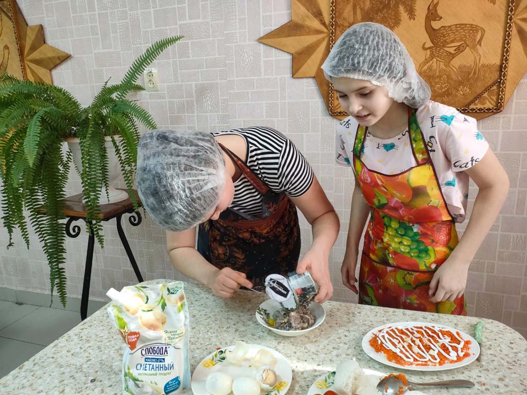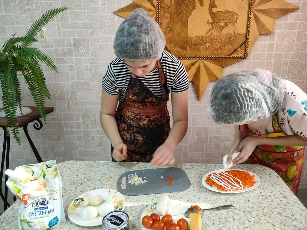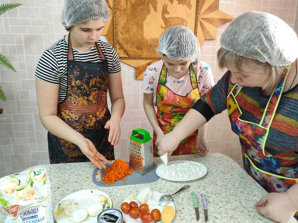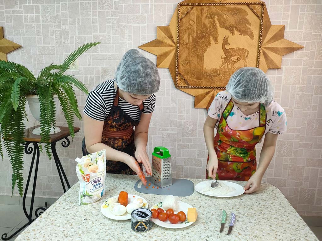 Воспитатели провели очередное занятие по домоводству, на котором дети приготовили салат «Мимоза». Процесс приготовления блюда детям пришёлся по душе. Воспитанники работали все дружно и слаженно.