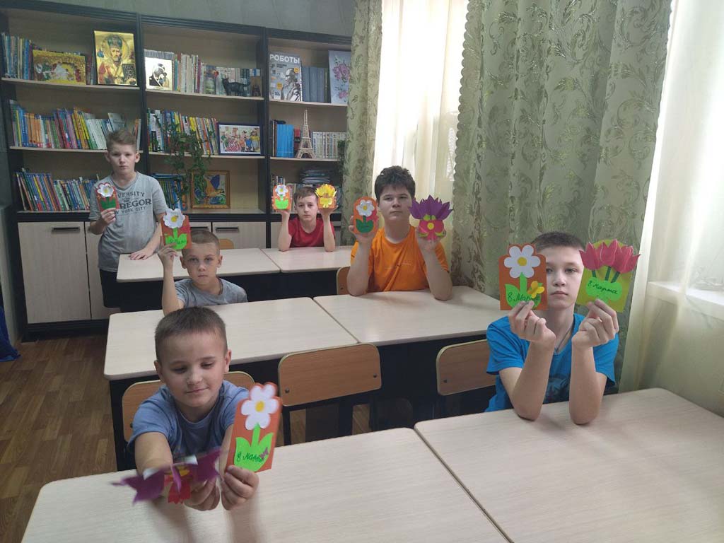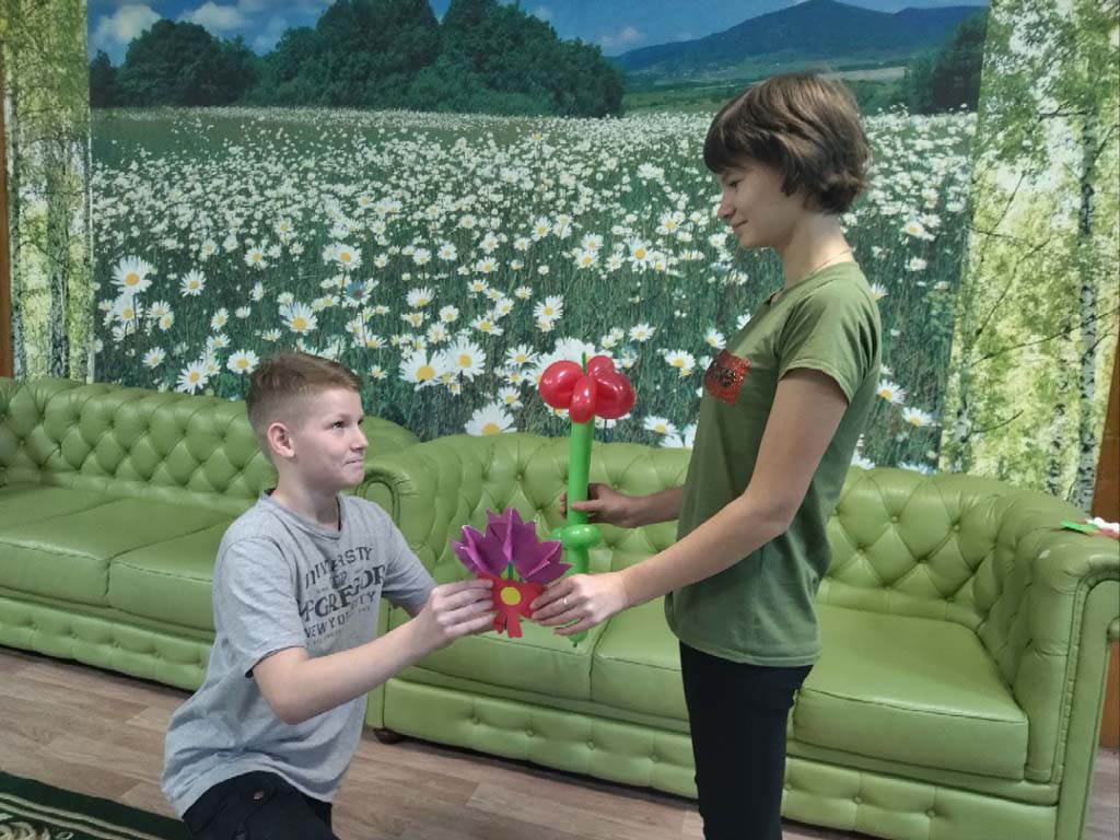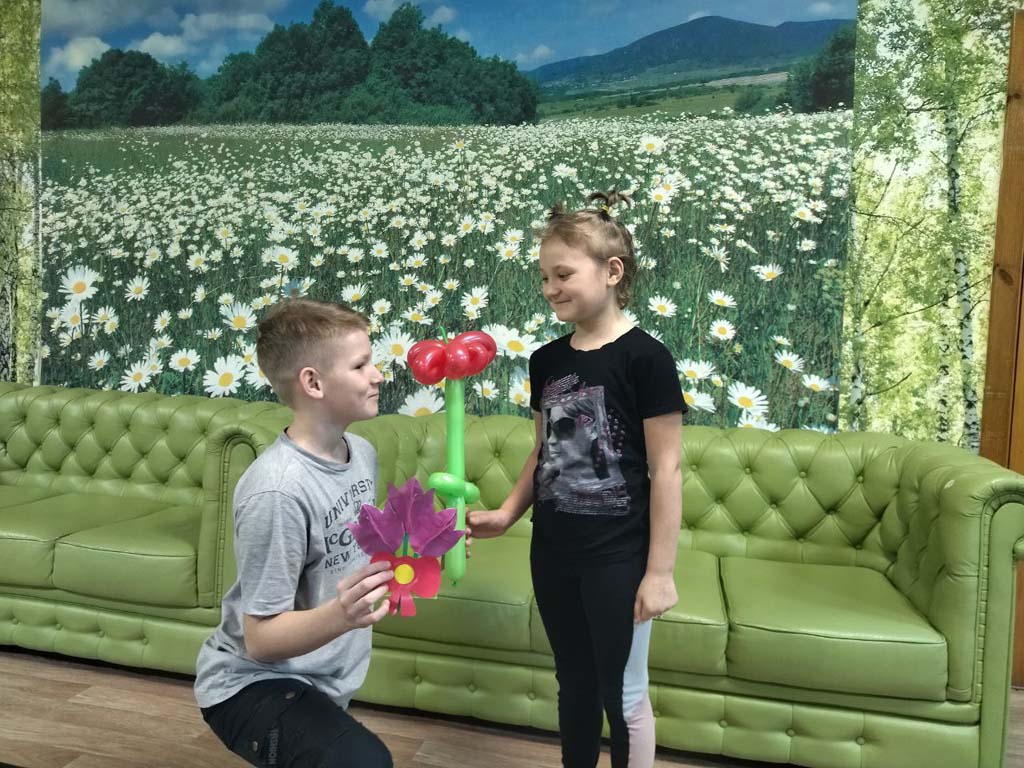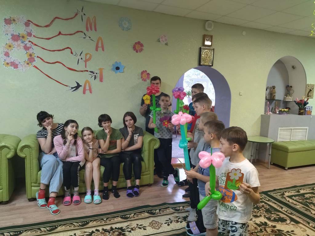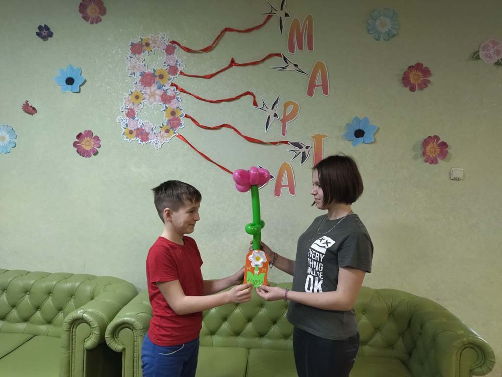 Утро в   стационарном отделения-социальный приют для детей и подростков ОКУ «Щигровский центр социальной помощи семье и детям «Импульс» началось словами  теплых и добрых поздравлений. Наши мальчишки порадовали    девчонок   цветами, которые  были  выполнены  из шаров и цветной  бумаги.