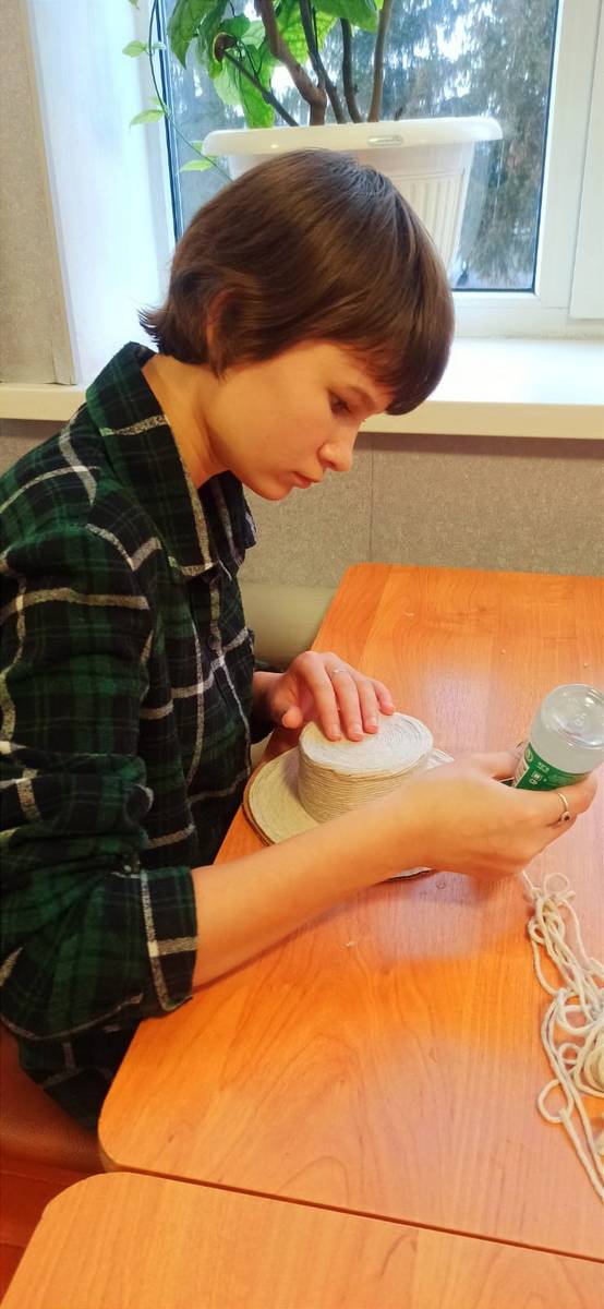 Джутовая филигрань — это искусство создания  предметов  домашнего обихода из клея и джута.  Воспитатели стационарного отделении социальный приют для детей и подростков ОКУ «Щигровский центр социальной помощи семье и детям «Импульс» провели для ребят матер-класс по изготовлению колобка из джута.  Воспитанникам   напомнили о тонкостях работы с джутом и   рассказали этапы выполнения работы. Несмотря на кажущуюся сложность, творческую работу ребята выполнили на отлично.