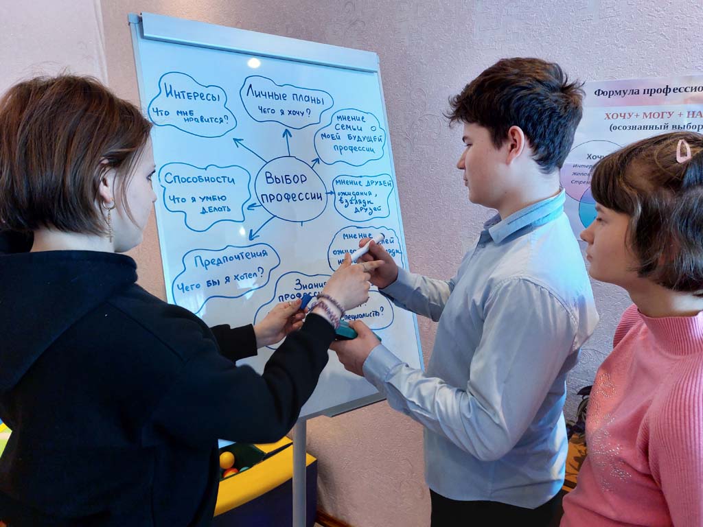 Сегодня в ОКУ «Щигровский центр социальной помощи семье и детям «Импульс» педагогами-психологами в рамках профориентационной работы с воспитанниками стационарного отделения-социальный приют для детей и подростков прошло занятия, направленное на самоопределение их профессиональных предпочтений, помощи в выявлении профессиональных интересов и склонностей, определение возможностей в освоении той или иной профессии.