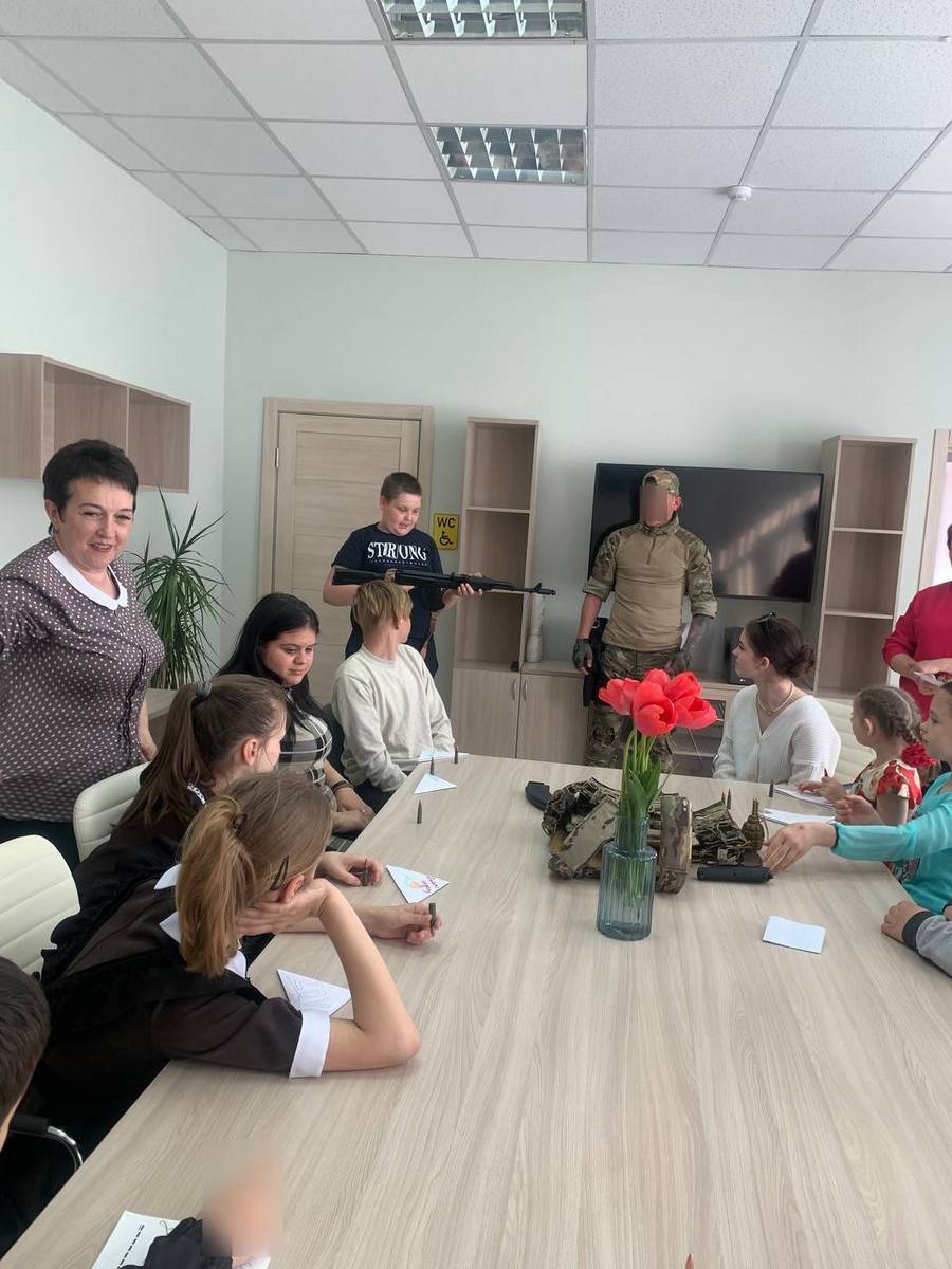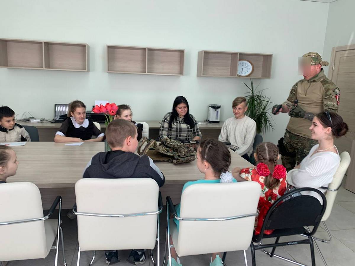 Военнослужащий рассказал детям о том, что солдаты очень благодарны детям за поддержку, письма, открытки, окопные свечи, которые они получают, находясь в зоне СВО.
