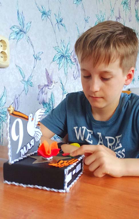 В  преддверии Дня  Победы  воспитанник Шенин Никита стационарного отделения- социальный приют для  детей  и  подростков ОКУ «Щигровский  центр социальной помощи семье и детям «Импульс» под руководством  воспитателей  выполнил  тематическую инсталляцию  «Вечный огонь», символизирующую память народа о павших героях, борцах за свободу и Родину.