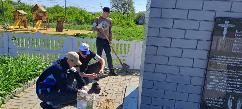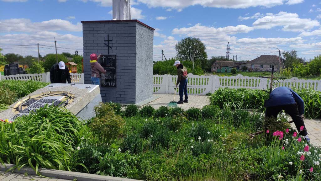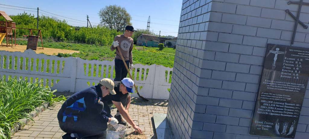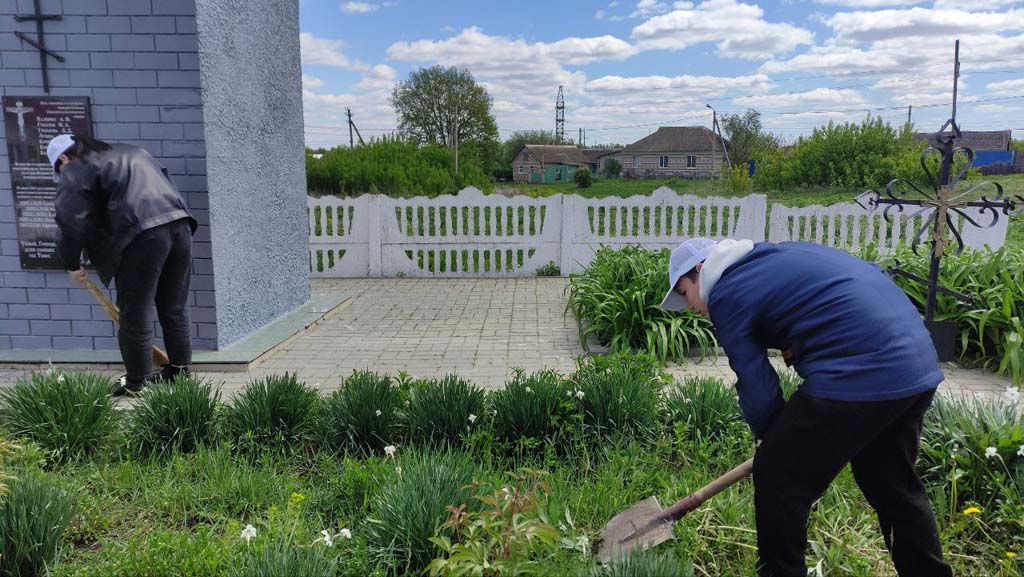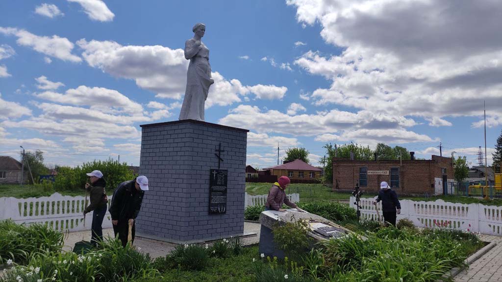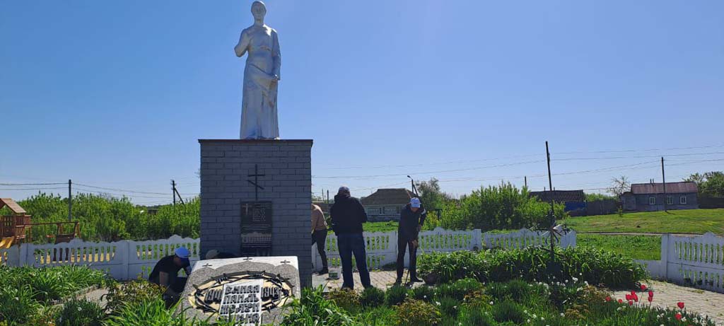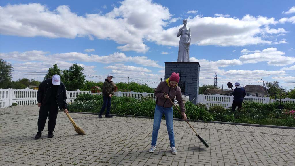 Сотрудники и воспитанники ОКУ «Щигровский центр социальной помощи семье и детям «Импульс» -члены  добровольческого отряда  «Ручейки  добра» и  студенты Щигровского филиала ОБПОУ "Советский социально-аграрный техникум имени В.М.Клыкова"-члены  добровольческого отряда «Альтруист», под руководством социального педагога  Центра  в преддверии Дня  Победы и  в  рамках XIII Всероссийской акции «Добровольцы-детям» привили в  порядок памятник  Скорбящая  мать  и   территорию рядом с  ним, отдав дань памяти поколению прошедшему   войну.