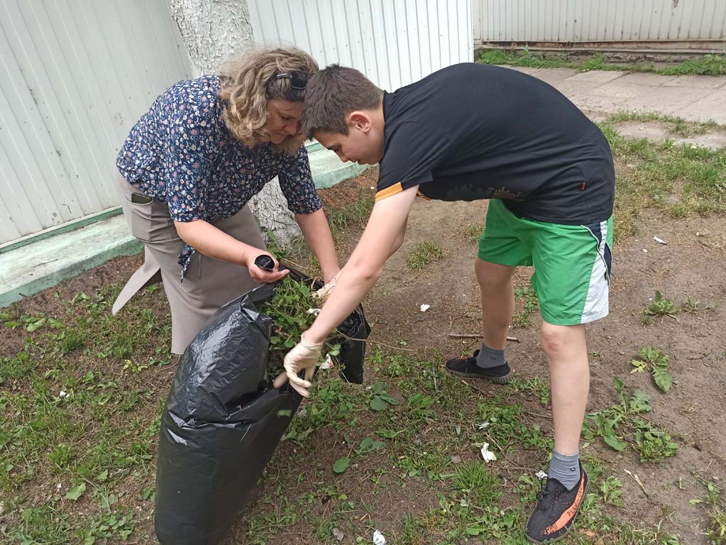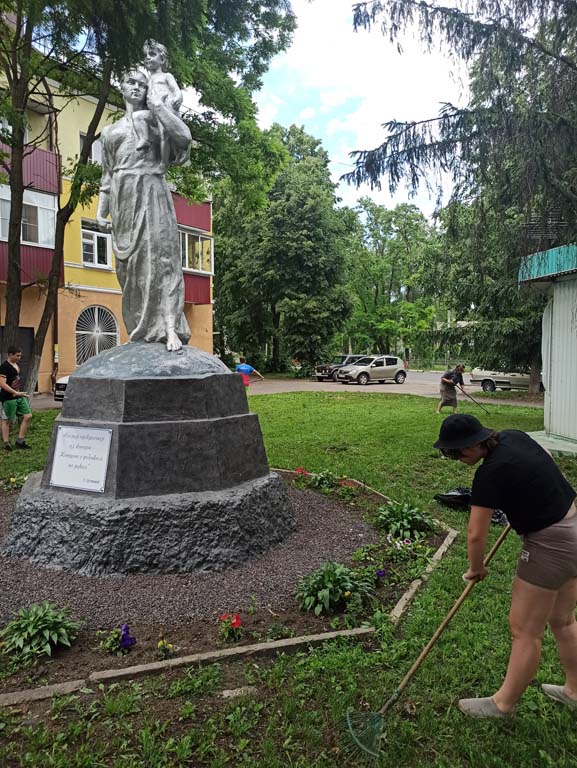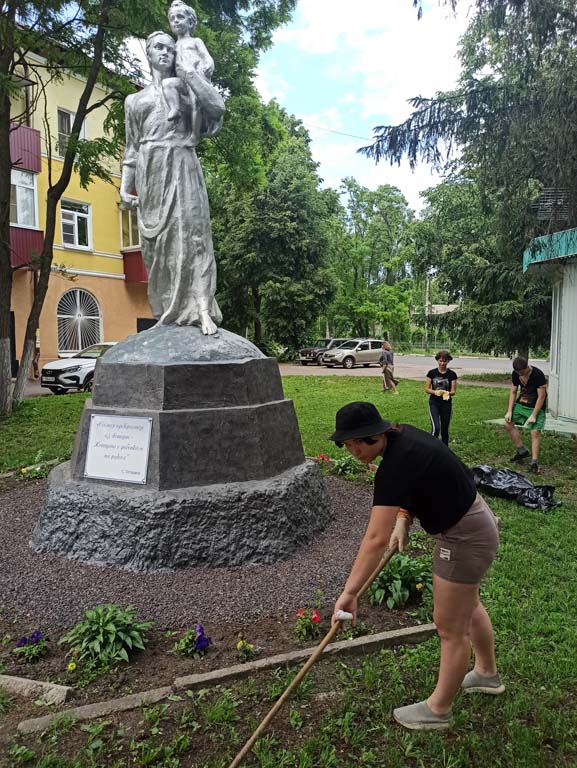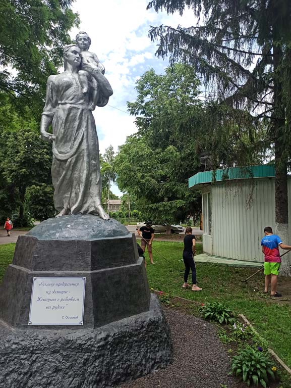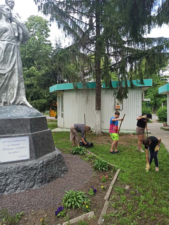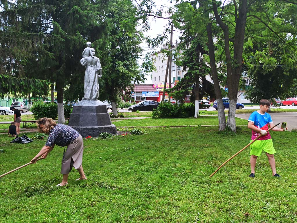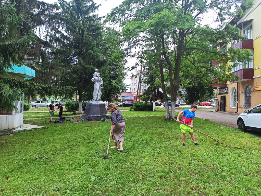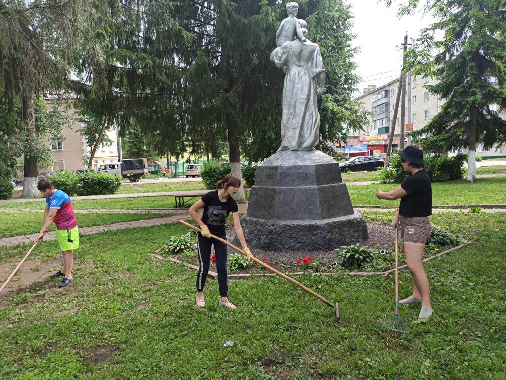 Сотрудники и воспитанники Центра- члены добровольческого отряда «Ручейки добра» следят за чистотой и ухоженным состоянием сквера, на территории которого расположен монумент женщина-мать «Крестьянка с ребенком». Дети и сотрудники Центра убрали мусор и скошенную траву на территории сквера.
