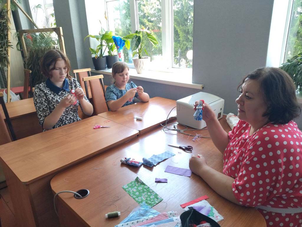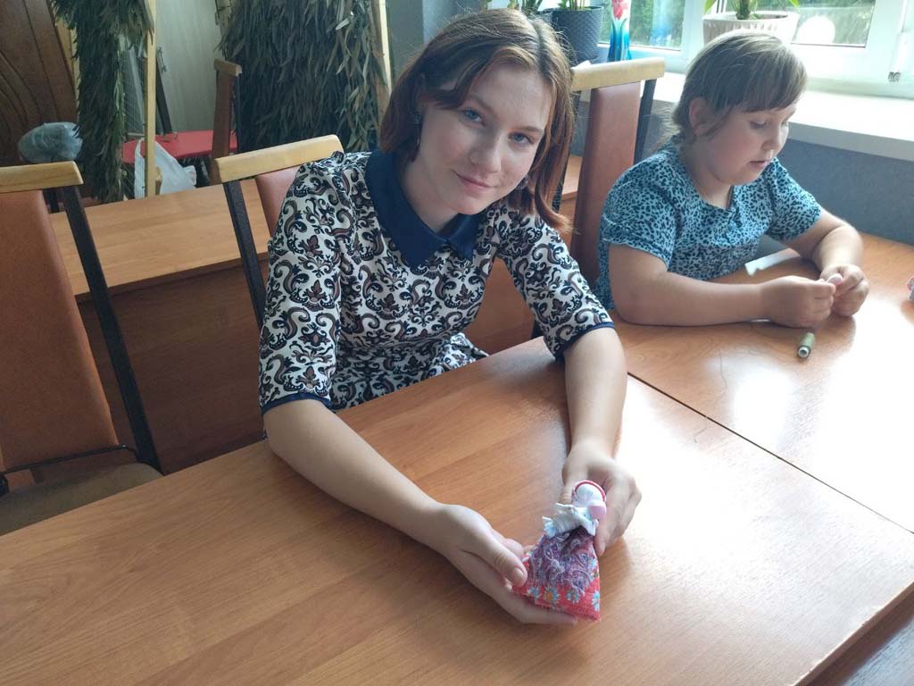 В стационарном отделении-социальный приют для детей и подростков ОКУ «Щигровский центр социальной помощи семье и детям «Импульс» воспитанники в рамках занятия клуба  «Радуга талантов»  выполнили  игровую куклу "Калужская узловая"-символ семьи и материнства, рассказывающую о роли  женщины  в  семье, передающую традиции русской семьи.