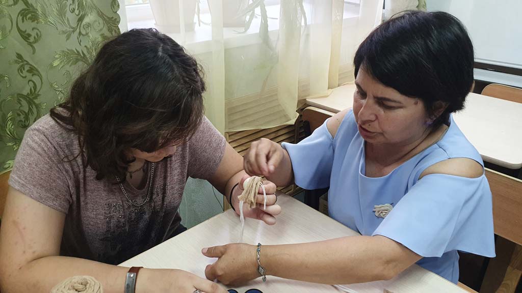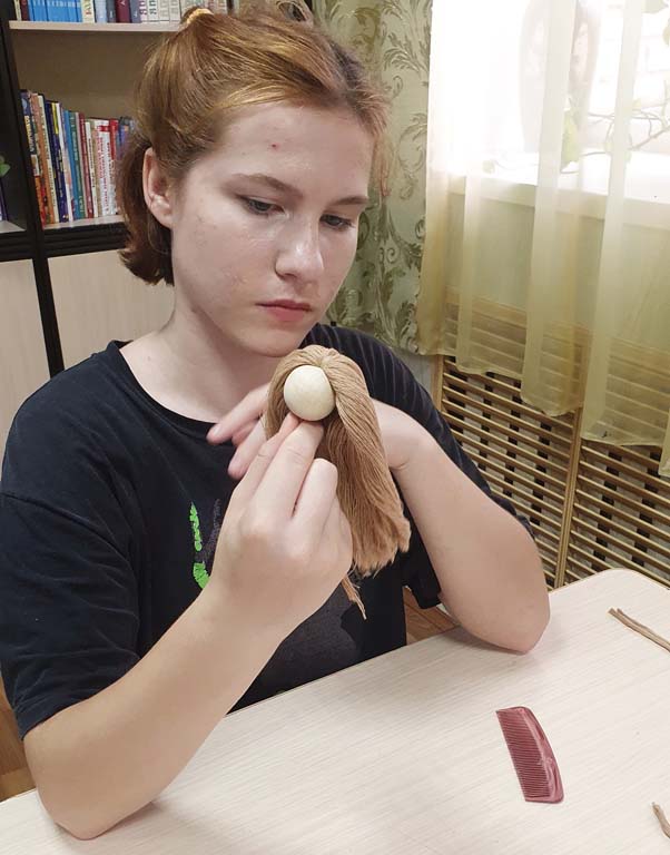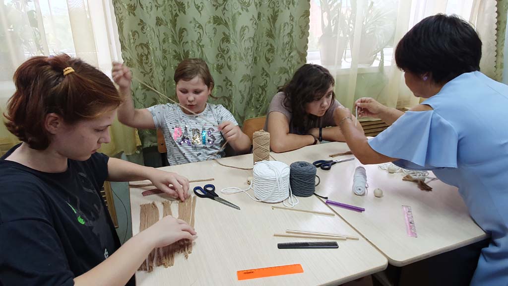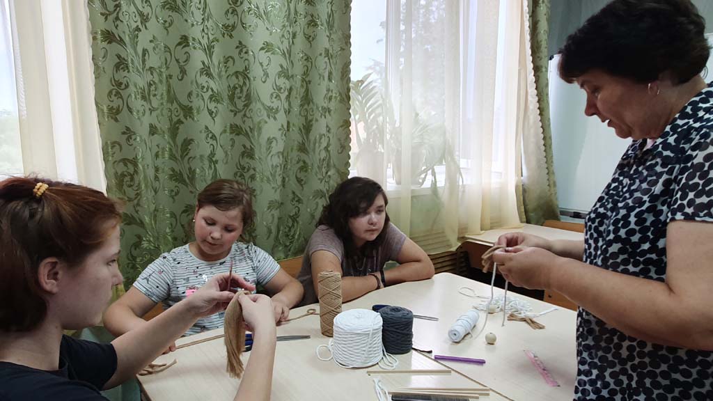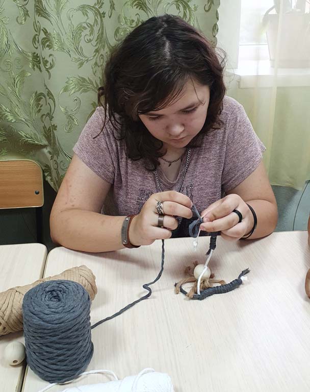 В рамках работы клуба «Радуга талантов» ОКУ «Щигровский центр социальной помощи семье и детям «Импульс» прошло занятие по изготовлению кукол в технике макраме.