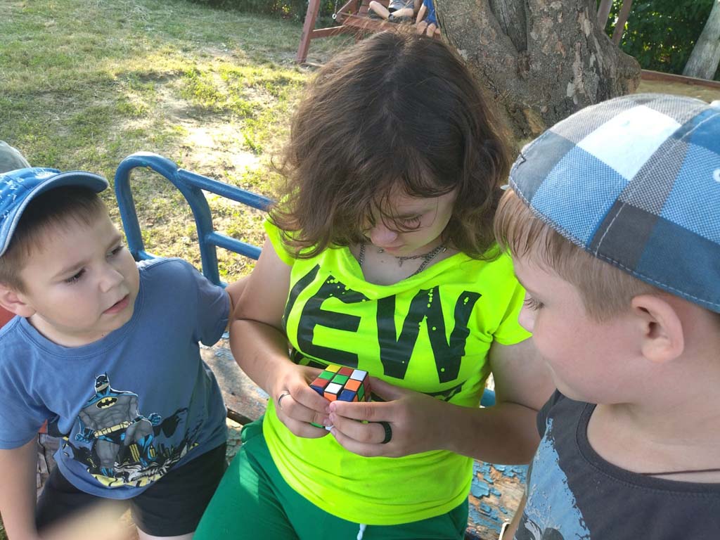 В ходе занятия дети разгадывали ребусы, кроссворды, головоломки, пытались собрать кубик-рубик. С наиболее сложными заданиями дошкольникам помогали справиться их старшие товарищи из числа воспитанников. Это способствовало их взаимодействию и позитивному эмоциональному общению. Само занятие было построено так, что стало для воспитанников увлекательной игрой, которая доставила им радость и удовольствие.