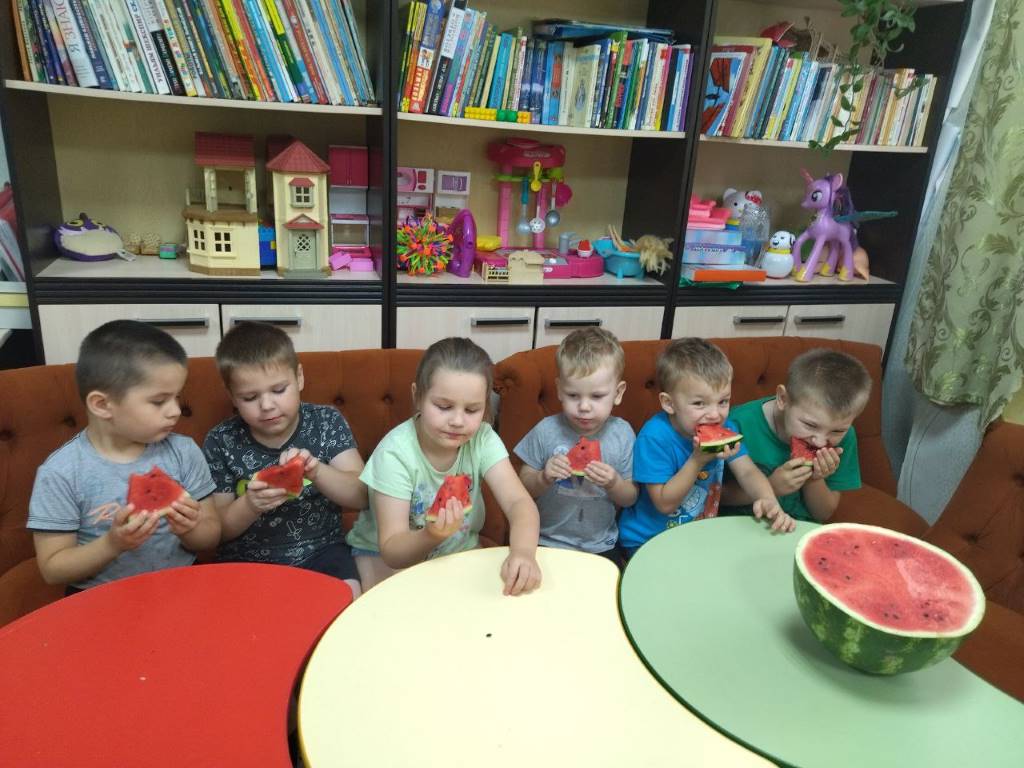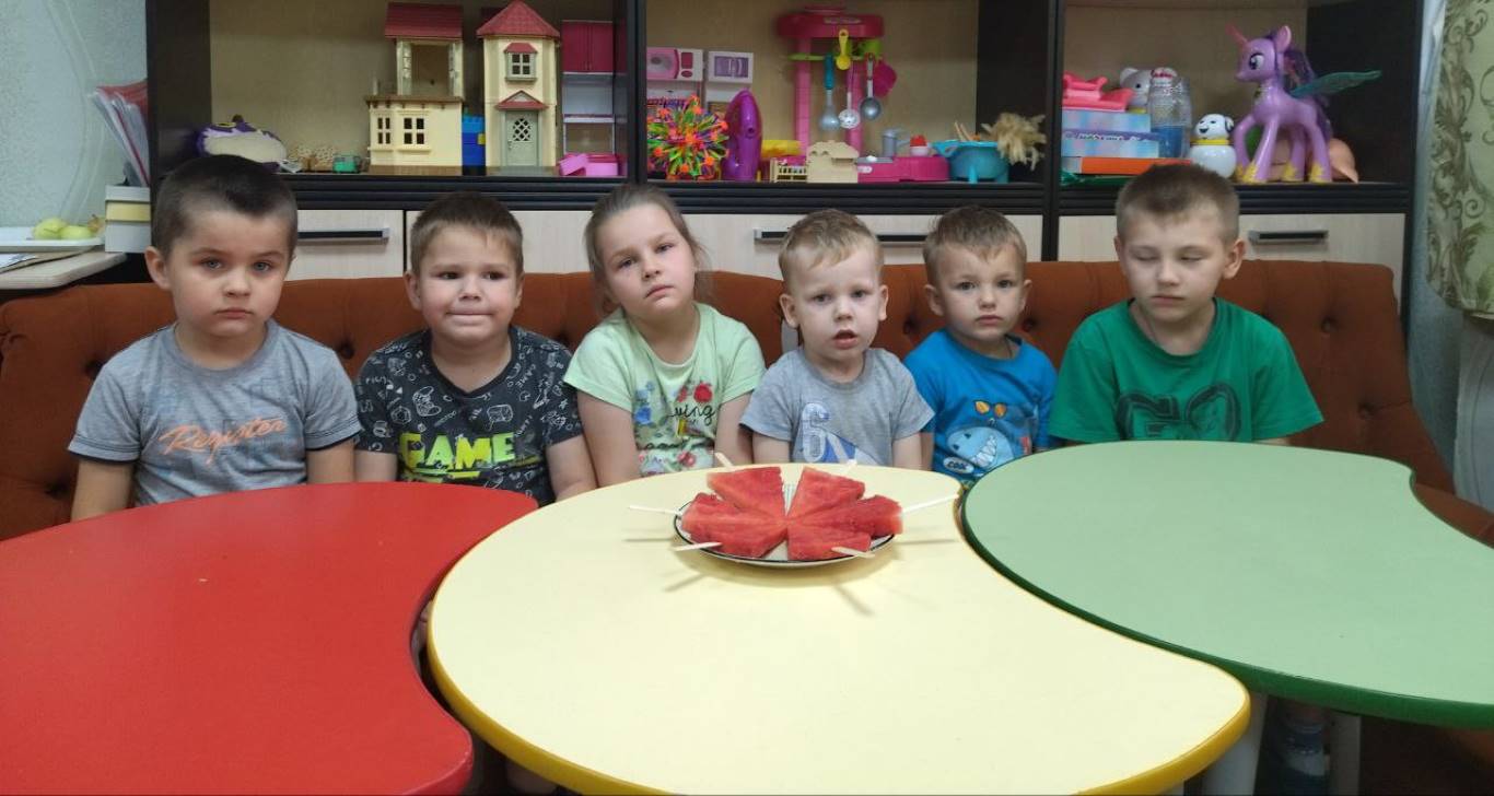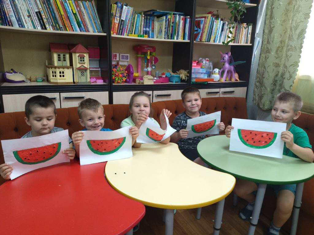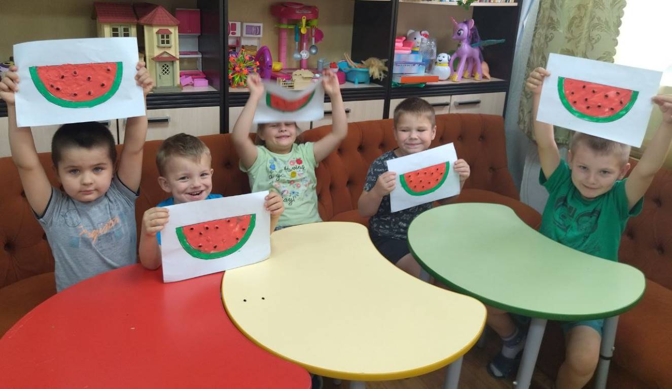 В младшей группе стационарного отделения-социальный приют для детей и подростков ОКУ «Щигровский центр социальной помощи семье и детям «Импульс» состоялось творческое занятие «Арбузник». Воспитатели рассказали детям о сочной, сладкой и полезной ягоде, особенно в жаркие летние дни. Ребята выполнили аппликацию арбуза пластилином на бумаге.  В конце занятия дети наслаждались вкусной и спелой ягодой.