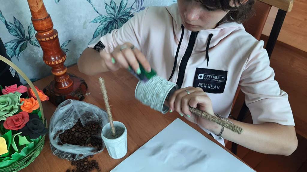 Воспитанники в творческой мастерской «Радуга талантов» стационарного отделения-социальный приют для детей и подростков ОКУ «Щигровский центр социальной помощи семье и детям «Импульс» выполнили кофейное дерево и топиарии из сухоцветов. Дети, работая с акриловыми красками, сухоцветами и кофейными зернами проявили не только свои художественные способности и фантазию, но и получили возможность для самовыражения, и приобрели новые практические навыки.