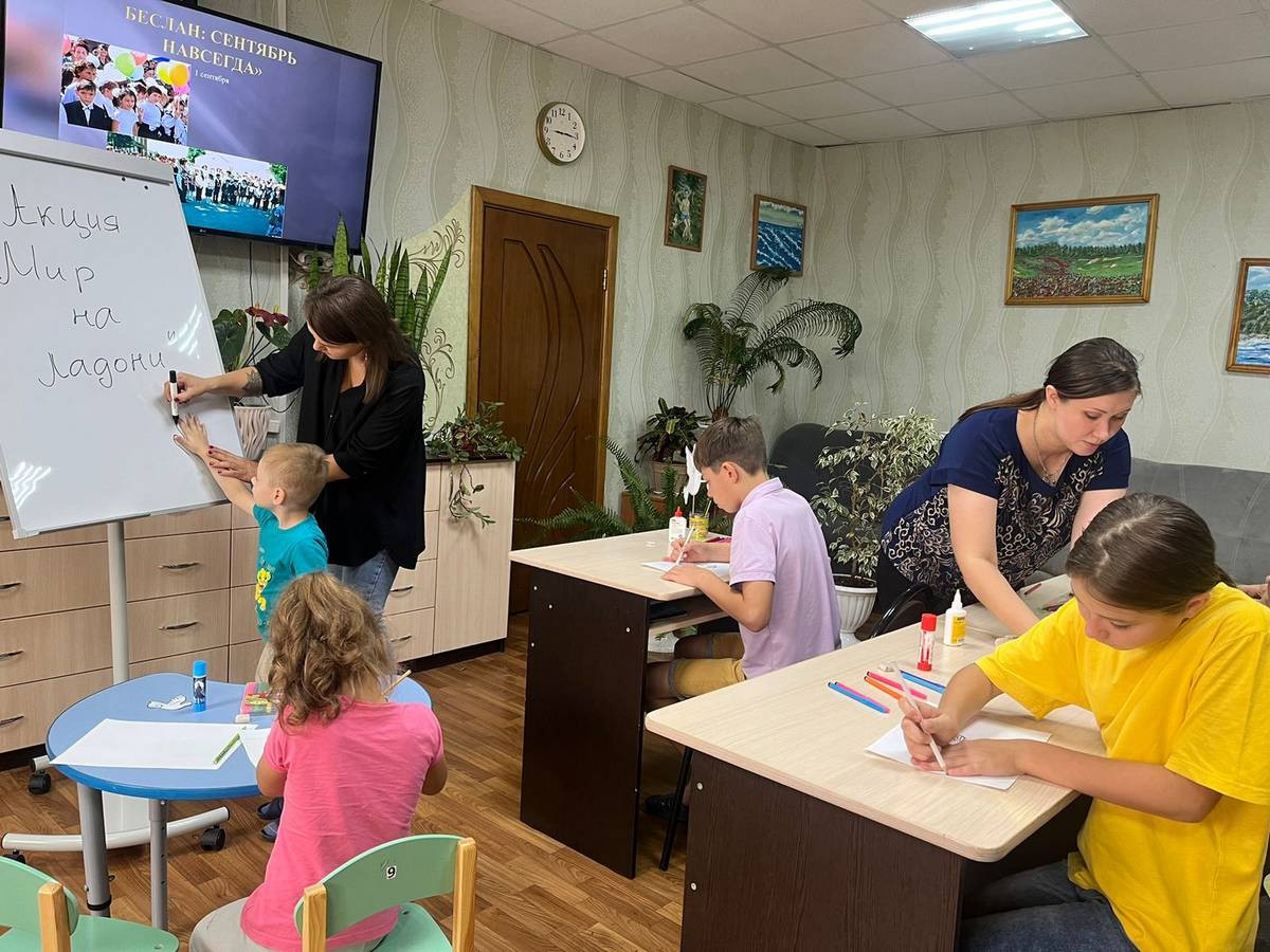 Сегодня в стационарном отделении-социальный приют для детей и подростков ОКУ «Щигровский центр социальной помощи семье и детям «Импульс» в рамках акции «Мир на ладони» социальные педагоги и воспитатели в память о событиях в Беслане напомнили воспитанникам о ценности мира, дружбы и взаимопонимания среди народов, важности человеческой жизни. Завершилось занятие творческим заданием на котором дети рисовали тематические рисунки.