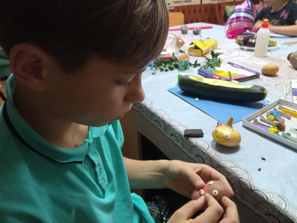 Творческое занятие «Гости с грядки» провели воспитатели стационарного отделения-социальный приют для детей и подростков ОКУ «Щигровский центр социальной помощи семье и детям «Импульс».   Воспитанники совместно с воспитателями отправились в увлекательное путешествие на овощную грядку и фруктовый сад.      Воспитатели в ходе виртуальной экскурсии познакомили детей с разнообразием овощей и фруктов. А в ходе творческого задания, используя овощи, фрукты, пластилин и другие подручные материалы ребята создавали свои поделки, придумывая интересные варианты сказочных героев.