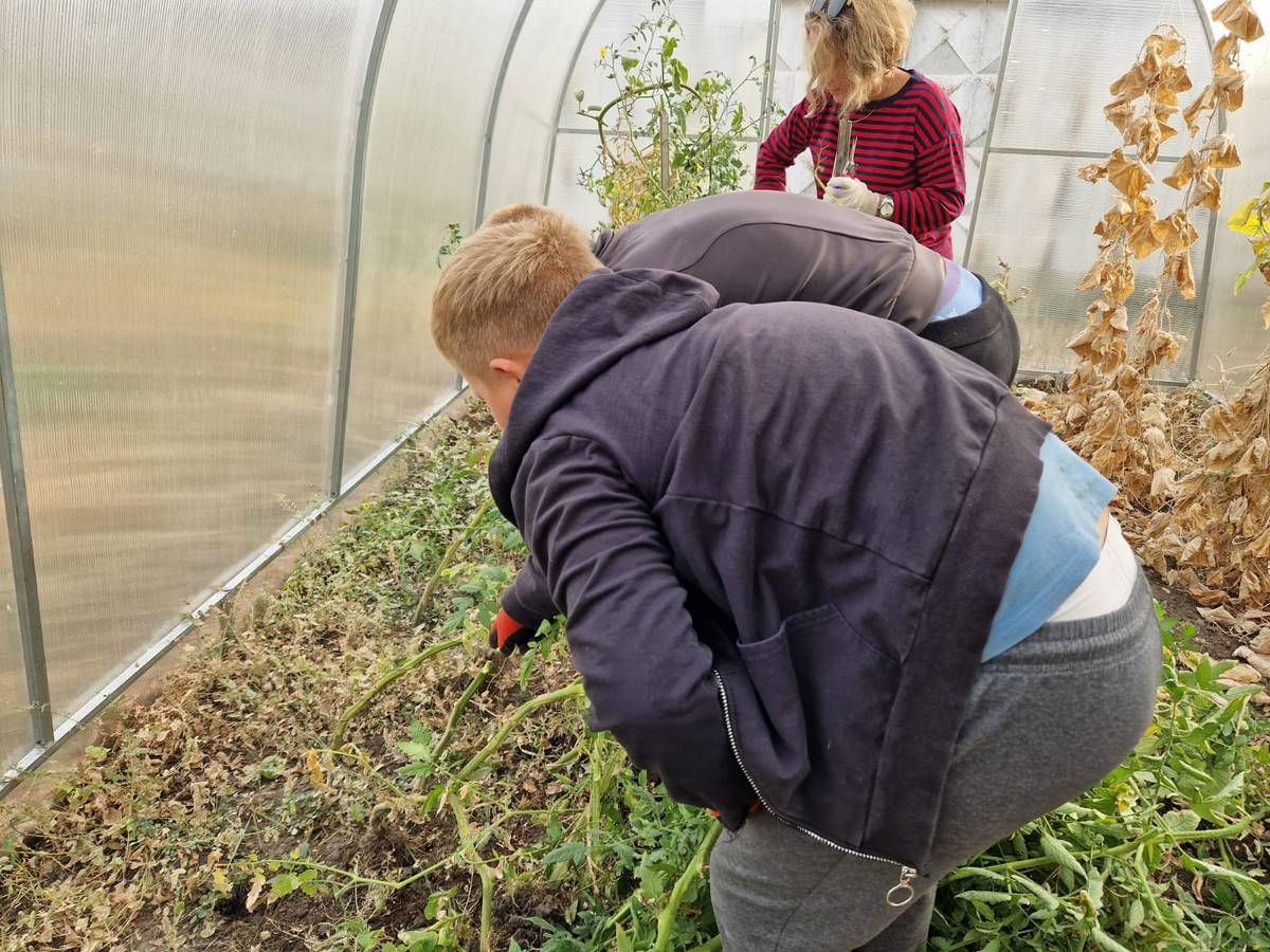Социальные педагоги ОКУ «Щигровский центр социальной помощи семье и детям «Импульс» в рамках работы школы садоводства и огородничества совместно с студентами Щигровского филиала ОБПОУ "Советский социально-аграрный техникум имени В. М. Клыкова"- членами добровольческого отряда «Альтруист» провели для семей, находящихся на социальном обслуживании мастер-класс по уходу за теплицей, приусадебным участком и клумбами.