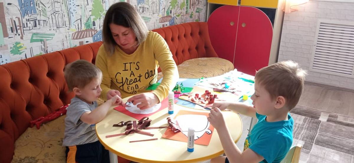В Щигровском центре «Импульс» воспитанники младшей группы работали с цветной бумагой