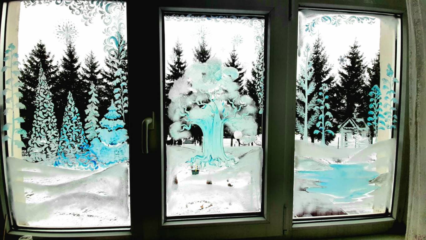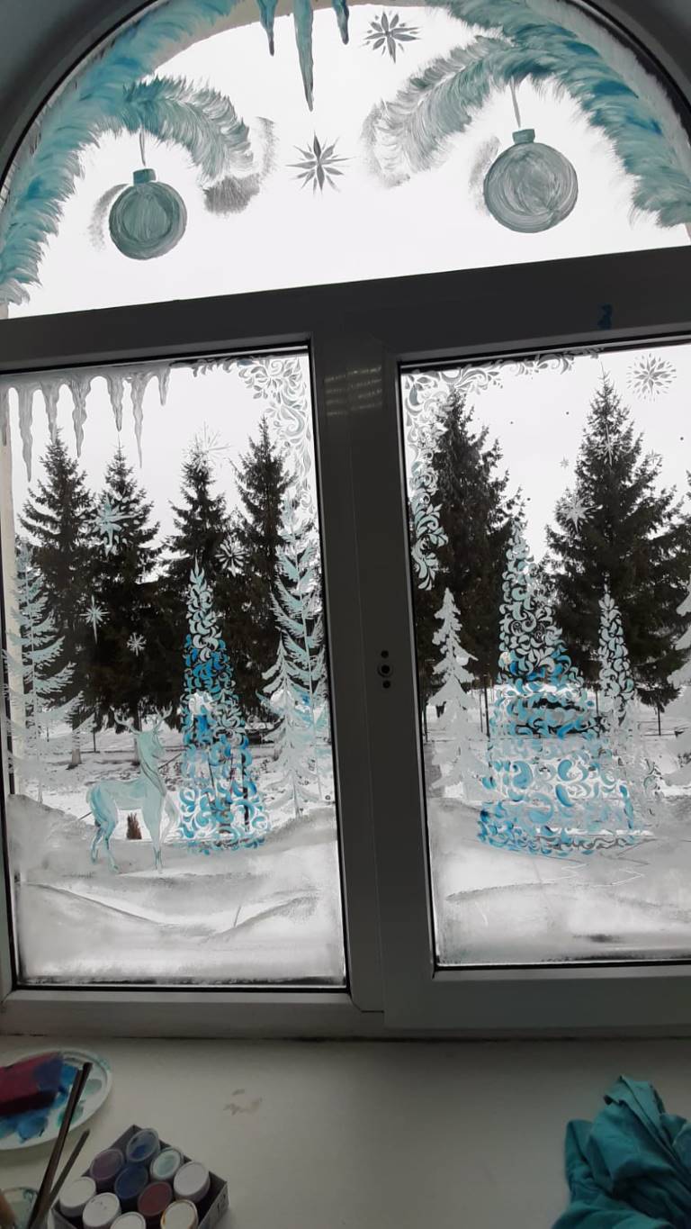 В стационарном отделении социальный приют для детей и подростков ОКУ «Щигровский центр социальной помощи семье и детям «Импульс» воспитанники совместно с   специалистами центра расписали окна, превратив их в настоящую новогоднюю сказку.