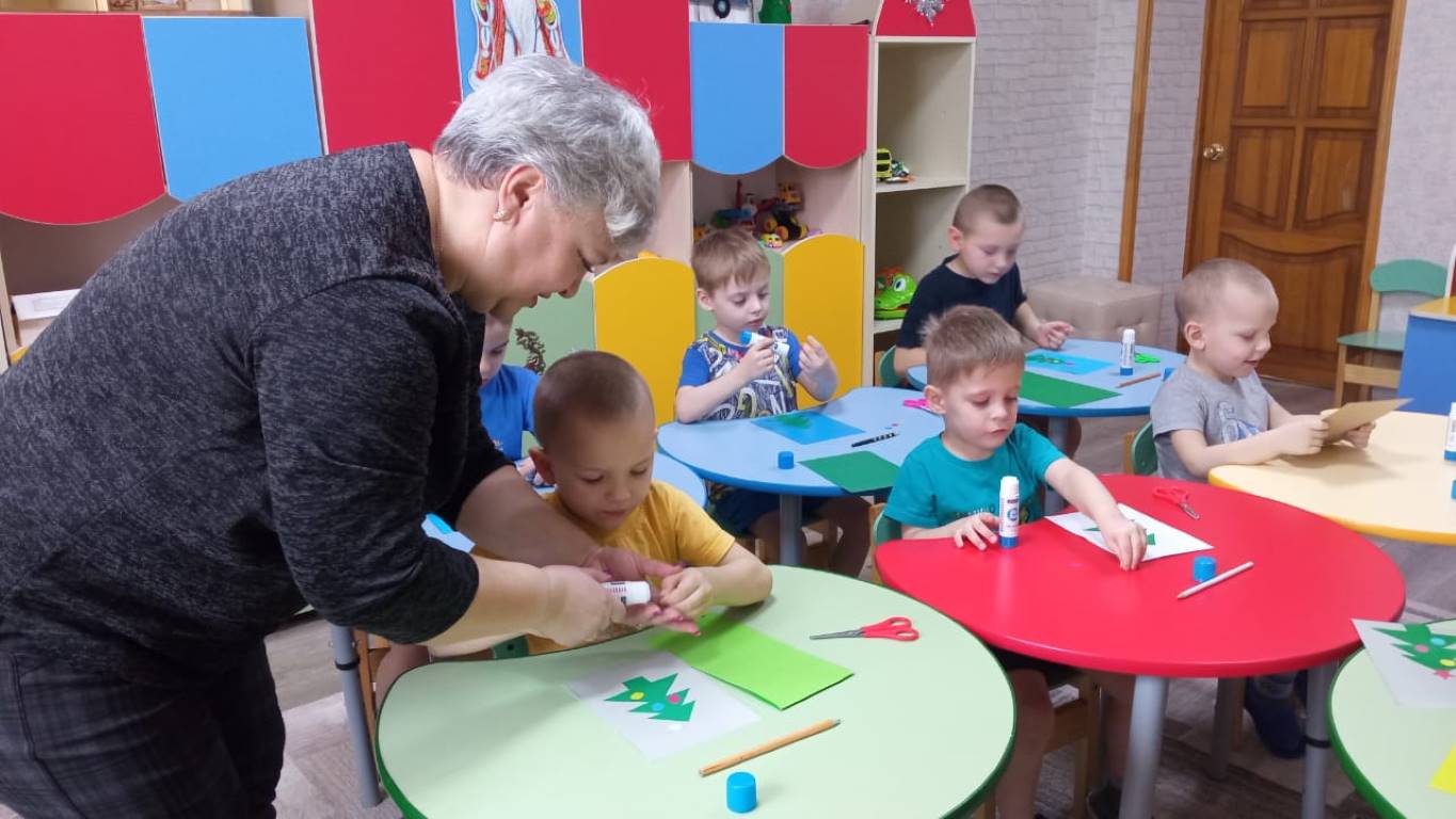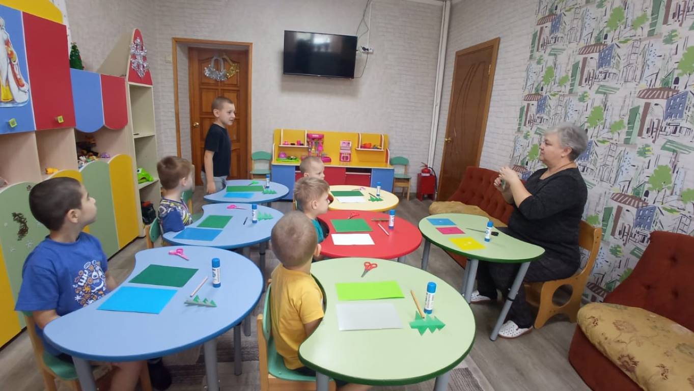 В Щигровском центре воспитанники младшей группой работали над аппликацией