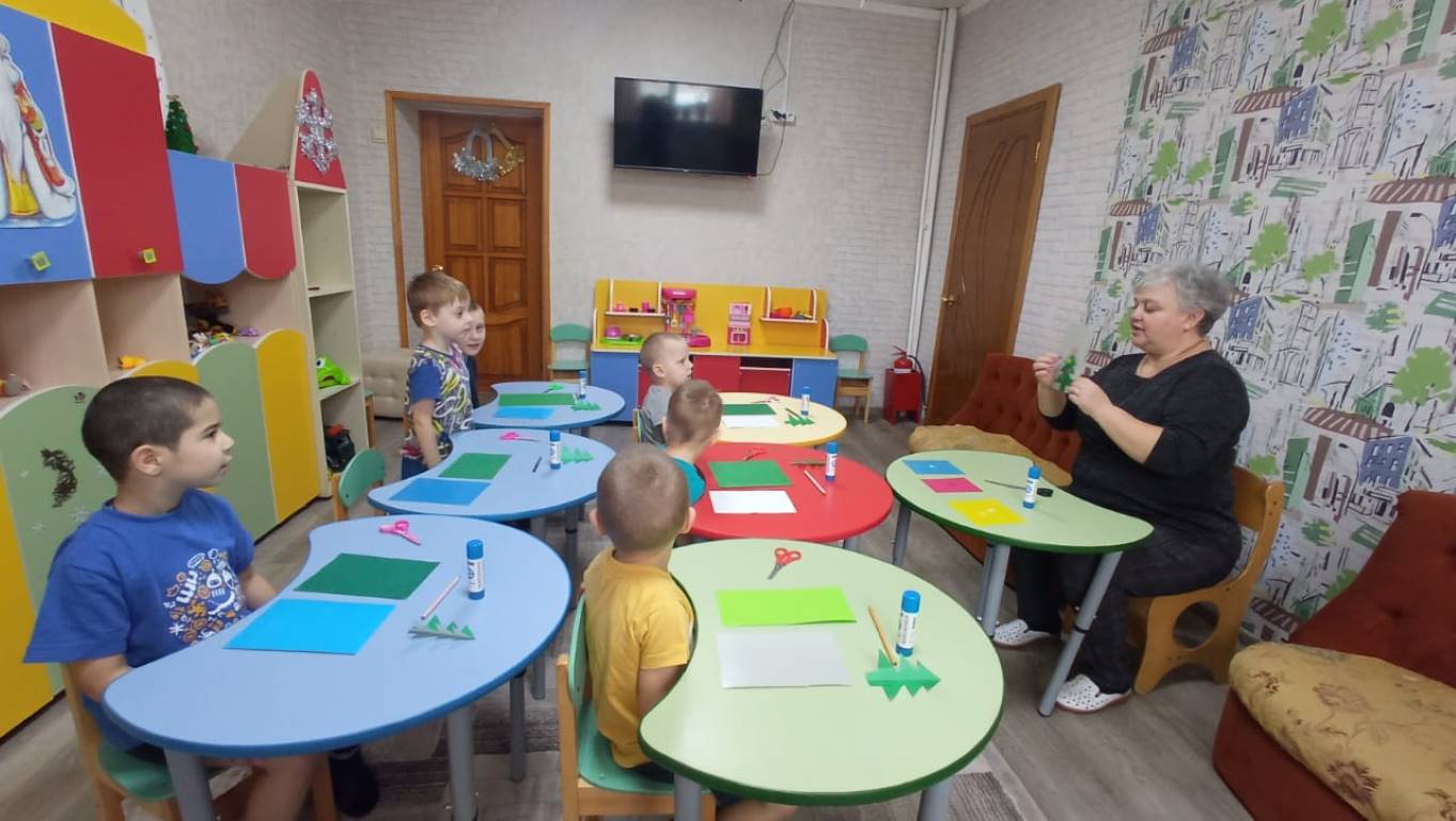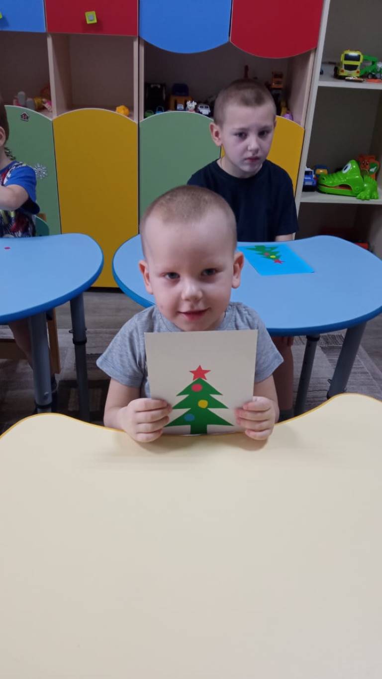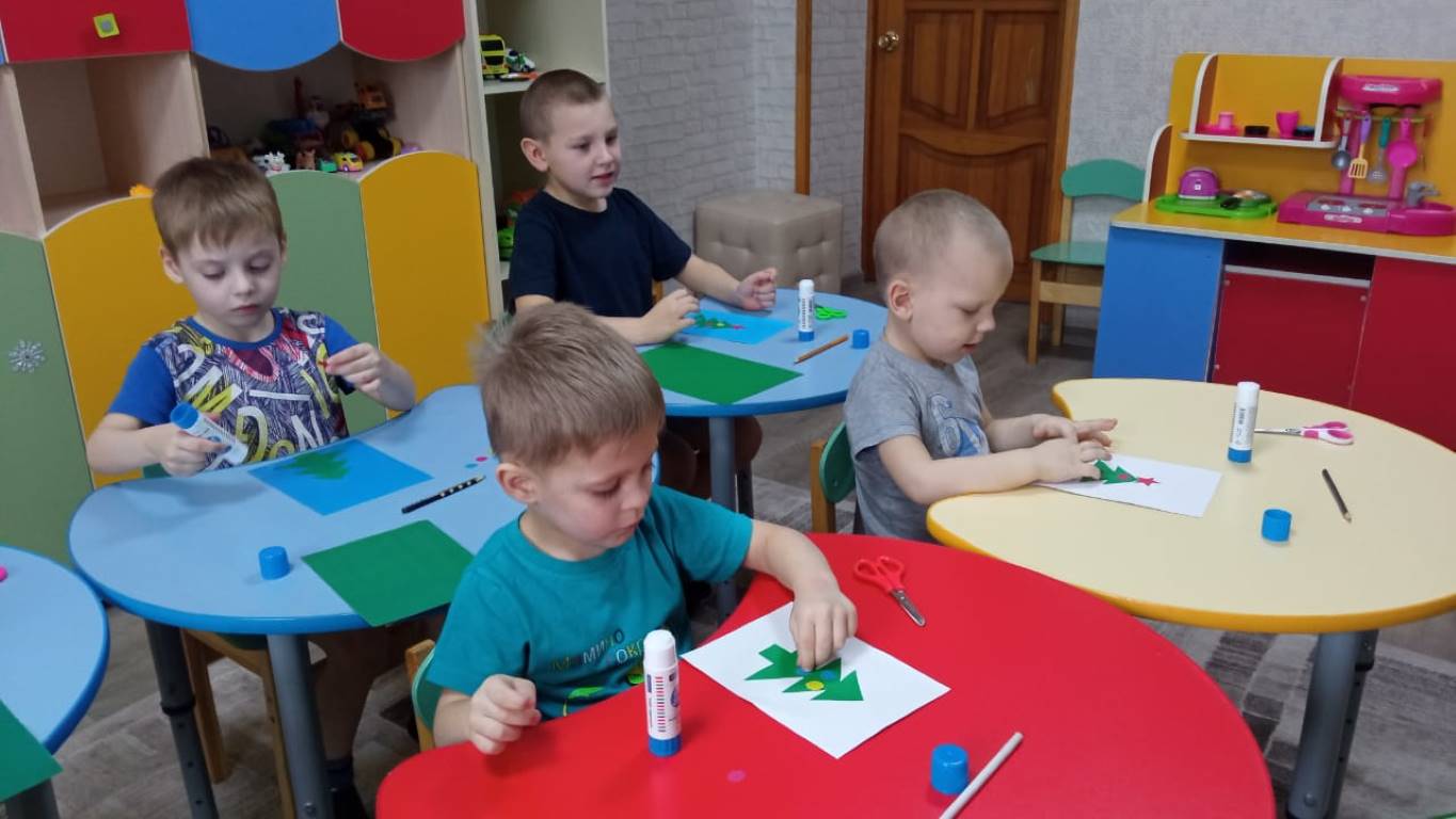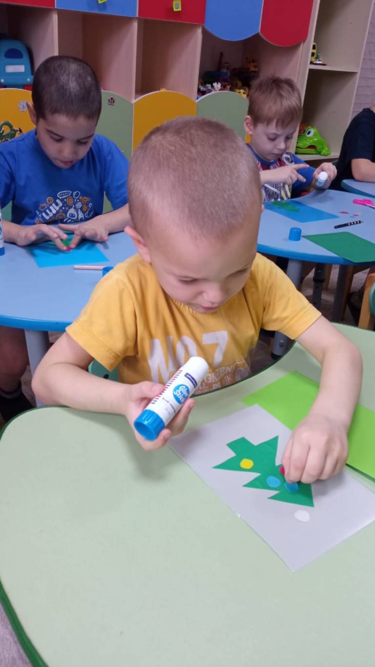 Воспитанники младшей группы стационарного отделения-социальный приют для детей и подростков ОКУ «Щигровский центр социальной помощи семье и детям «Импульс» работали над аппликацией «Елочка». И вот, что у них получилось.