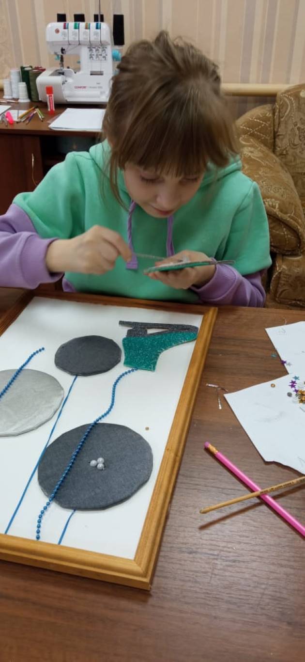 В стационарном отделении-социальный приют для детей и подростков ОКУ «Щигровский центр социальной помощи семье и детям «Импульс» воспитанники продолжили интересную и увлекательную работу, создав новогоднее панно.  Вот такое панно у нас получилось.