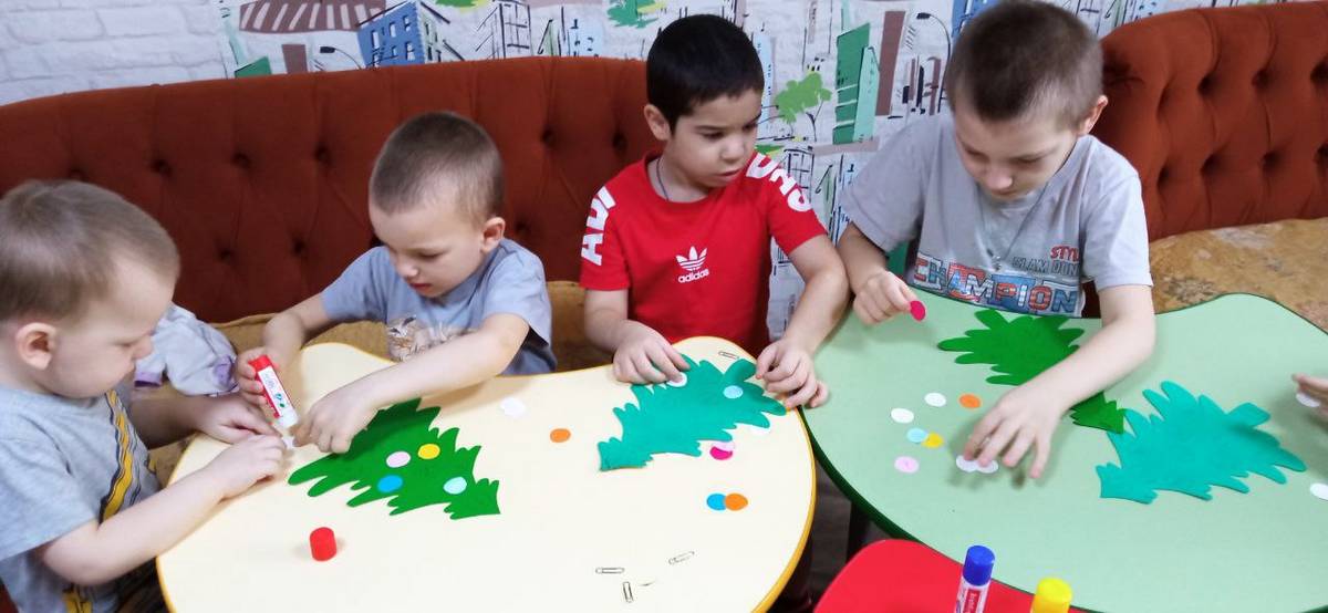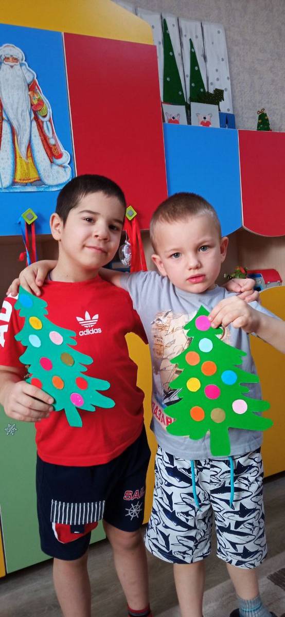 Новогодние праздники еще не завершились и продолжают радовать детвору. Вот и воспитанники младшей группы стационарного отделения-социальный приют для детей и подростков ОКУ «Щигровский центр социальной помощи семье и детям «Импульс» в преддверии старого нового года  сделали поделки-елочки, которые украсили  разноцветными шарами. Дети с увлечением работали над своими поделками, проявляя фантазию, экспериментируя с цветами.