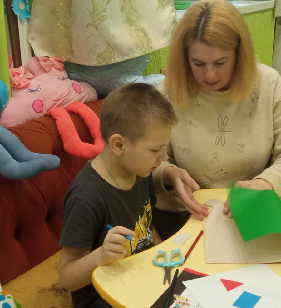 Воспитанники Щигровского центра принимают работали с аппликацией