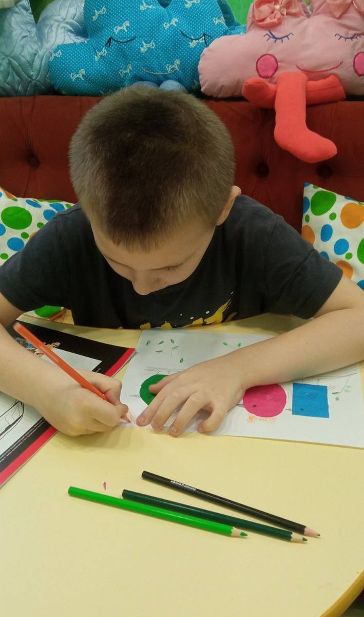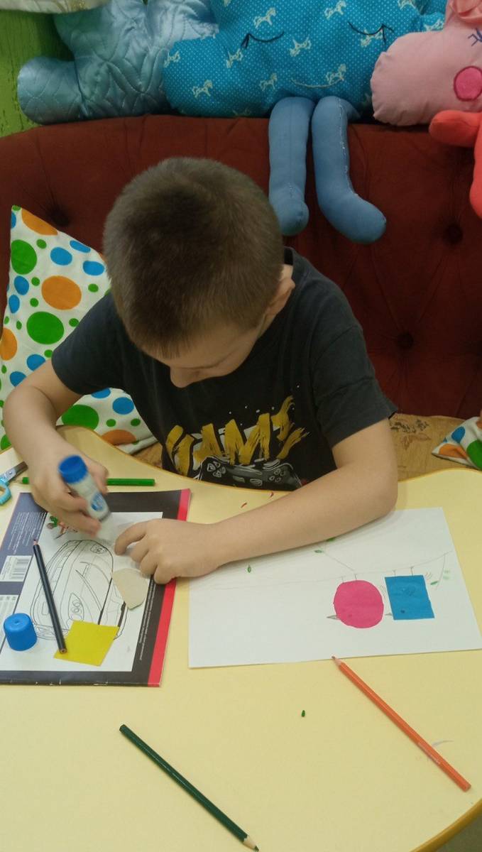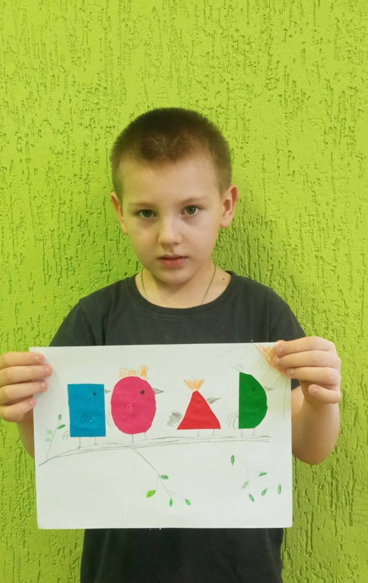 Воспитанники отделения «Дошкольник» ОКУ «Щигровский центр социальной помощи семье и детям «Импульс» работали с аппликацией  из геометрических фигур, продолжая знакомиться с  с формами, цветами и композицией. Работа с геометрическими фигурами помогает детям понять основы геометрии, развивает мелкую моторику  и пространственное мышление. Результат работы:«Птички на ветке».
