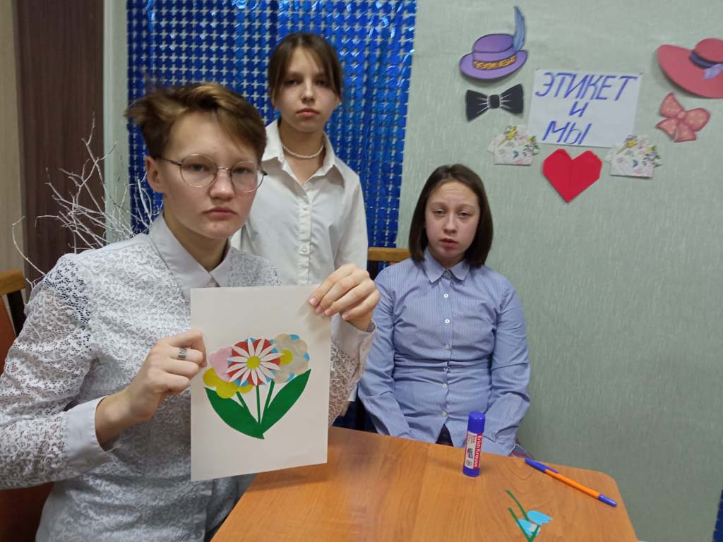 В рамках такого занятия ребятам напомнили правила приветствия, прощания, выражения благодарности, оформления открыток на различные темы, подарков, поведение за столом, общения.