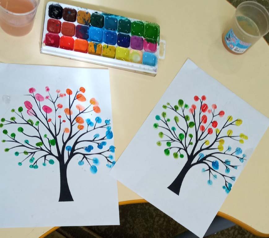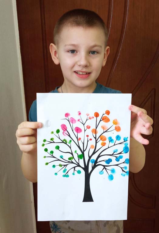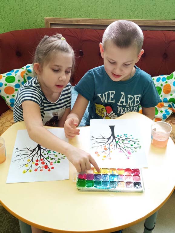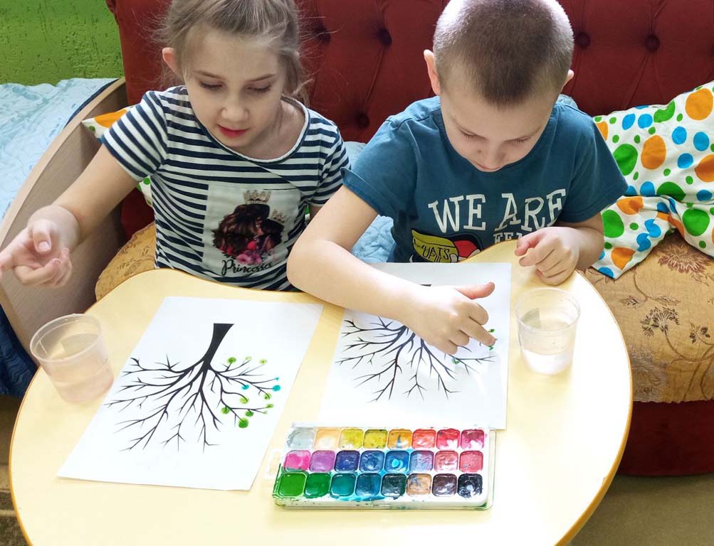 Воспитанники отделения «Дошкольник» ОКУ «Щигровский центр социальной помощи семье и детям «Импульс» рисовали в технике   пальчикового рисования, направленной на сенсорное восприятие воображения и развитие эмоциональной сферы малышей. Дети рисовали времена года, отразив их разными цветами на дереве.  Ребята с удовольствием окунали пальчики в краски и создавали яркие картины.