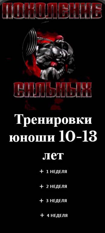 Одним из направлений деятельности подросткового клуба «Поколение сильных» ОКУ «Щигровский центр социальной помощи семье и детям «Импульс» является вовлечение молодежи в занятия спортом. Приходя в тренажерный зал, новички сталкиваются с проблемой отсутствия знаний и навыков, необходимых для тренировок и как следствие- быстро теряют интерес к тренировкам. Чтобы помочь новичкам, коллективом Центра подготовлен месячный план тренировок для юношей 10-13 лет.   Более того, для удобства разработано мобильное приложение, которое содержит данный тренировочный план с достаточно подробным описанием упражнений.   Приложение абсолютно бесплатно и доступно для скачивания на RuStore по ссылке: