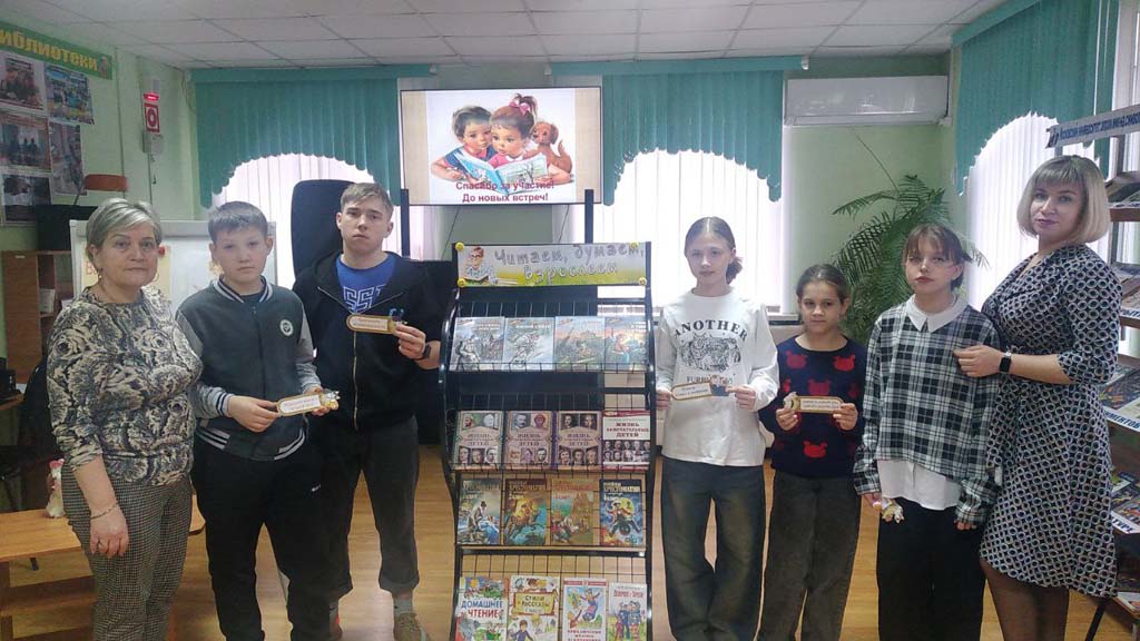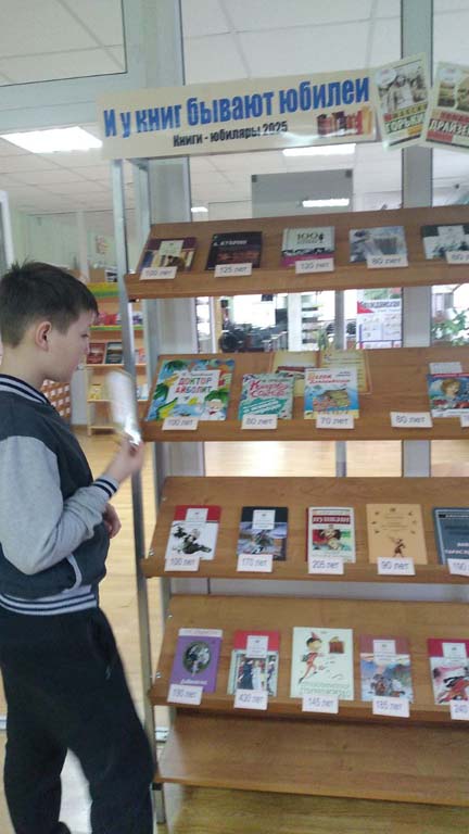 Ведущие познакомили детей с основными знаменательными датами этого года. У книжной выставки «Читаем, думаем, взрослеем» рекомендовали книги серии: «Военное детство», «Книги – мои друзья», «Жизнь замечательных детей». Также ребята познакомились с книгами юбилярами 2025 года.