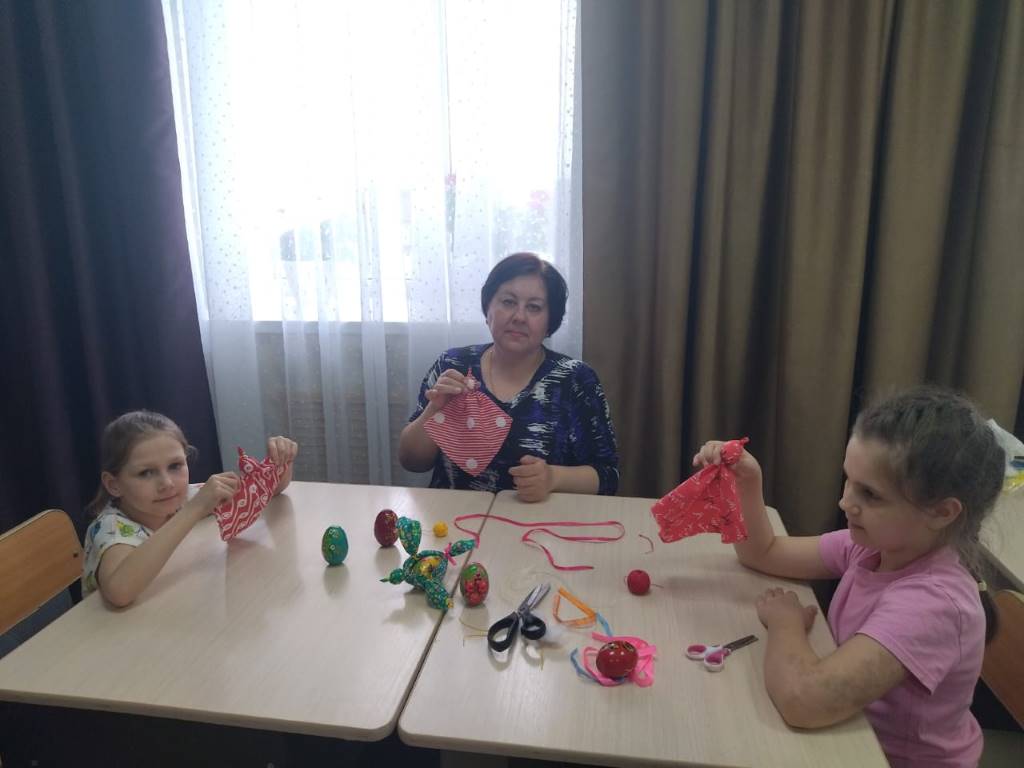 Специалисты стационарного отделения- социальный приют для детей и подростков ОКУ «Щигровский центр социальной помощи семье и детям «Импульс» провели с воспитанниками творческое занятие «Птичка для яичка» с использованием ткани. Праздничная пасхальная тематика позволяет реализовывать  сюжеты с курочками и расписными яйцами.