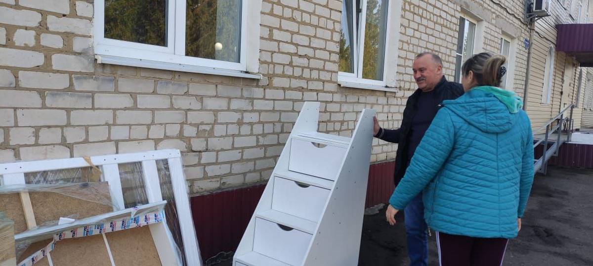 Директор Центра Борзенков Сергей Иванович, специалисты Центра и родительский актив «Семейной беседки» вручили многодетной маме, проживающей в пункте временного размещения двухярусную кровать.