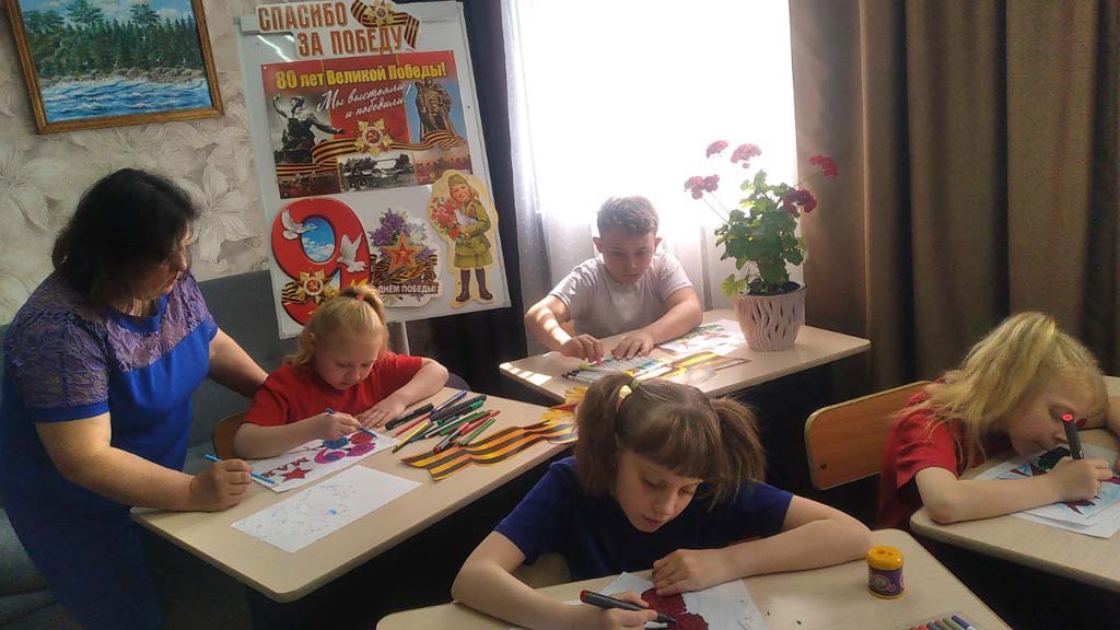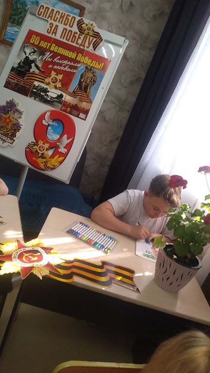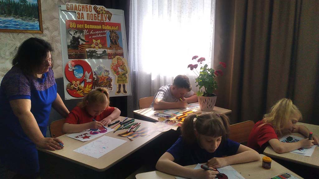 Воспитанники стационарного отделения - социальный приют для детей и подростков ОКУ «Щигровский центр социальной помощи семье и детям «Импульс» в преддверии  Дня Победы сделали открытки.
