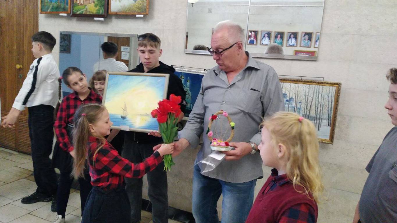 По окончанию мероприятия, художник подарим центру одну из своих картин, а ребята в благодарность вручили живописцу памятный сувенир и цветы.