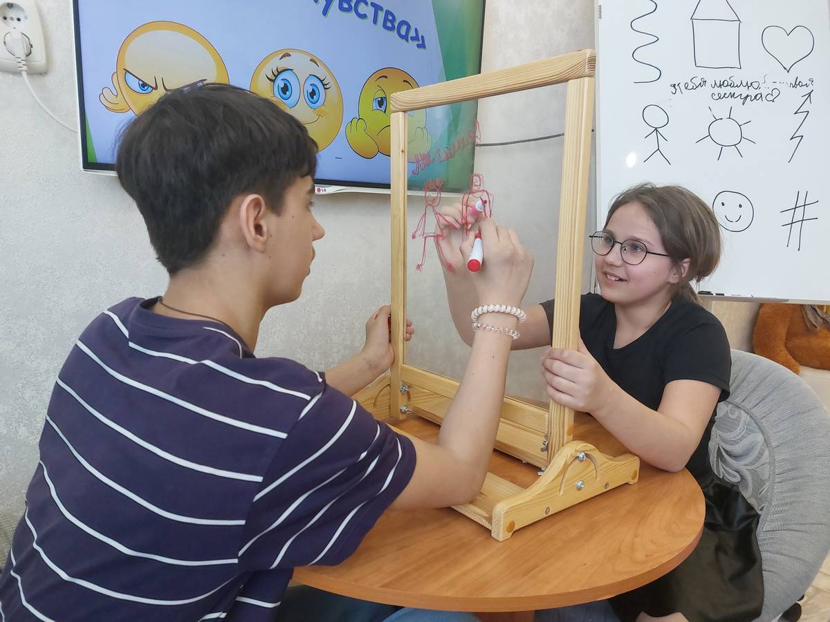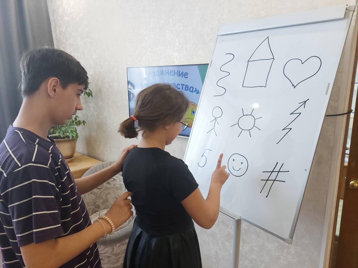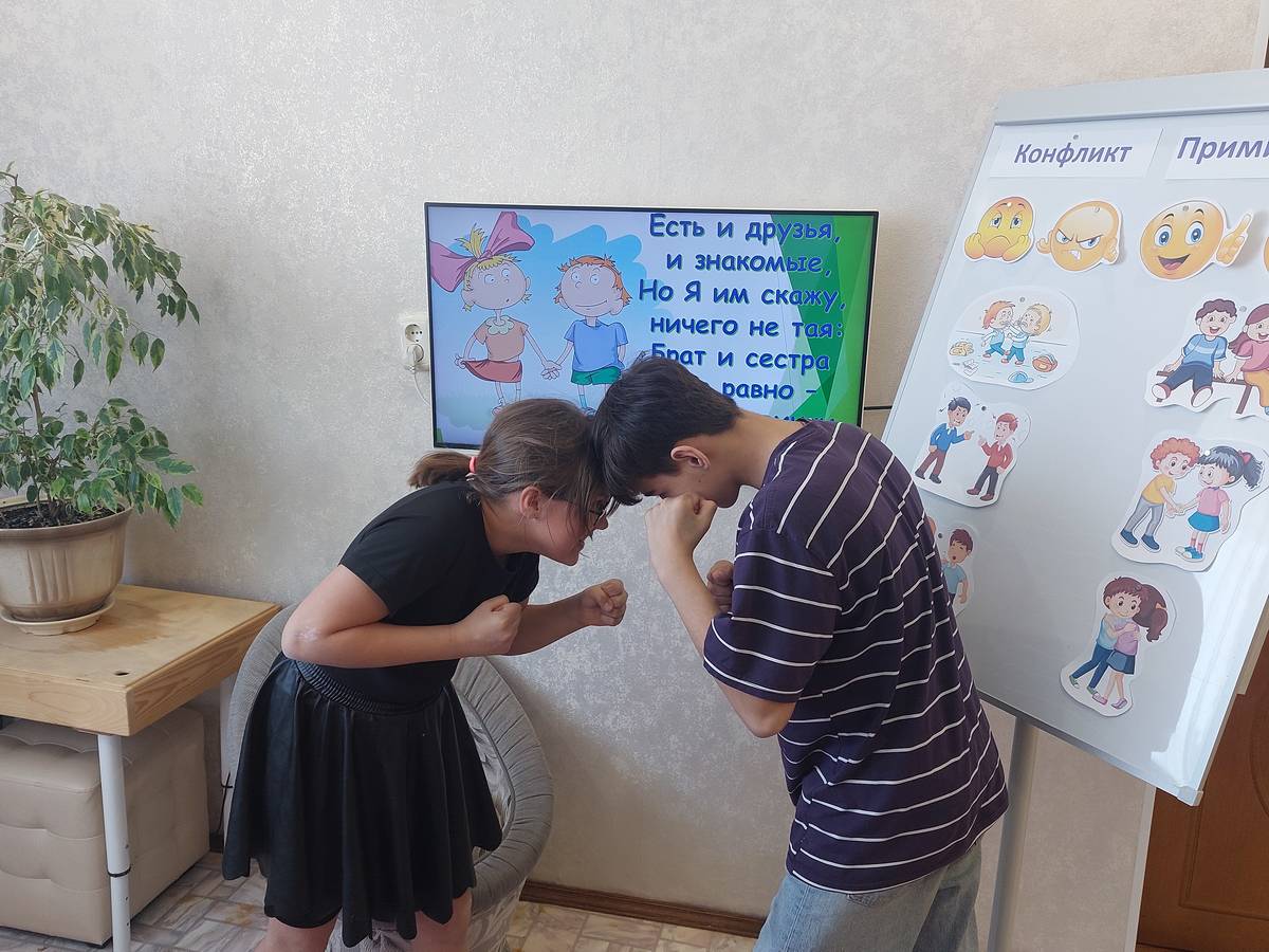 Занятие включало упражнения с элементами тренинга, направленного на работу с ассоциациями к понятию «конфликт» и «наши эмоции и чувства». Также были использованы арт-терапевтические техники, такие как «Передача чувств» и упражнения с применением прозрачного мольберта, например, «Сделай как Я». Эти мероприятия способствовали развитию навыков коммуникации, пониманию собственных эмоций и улучшению взаимоотношений между братом и сестрой.