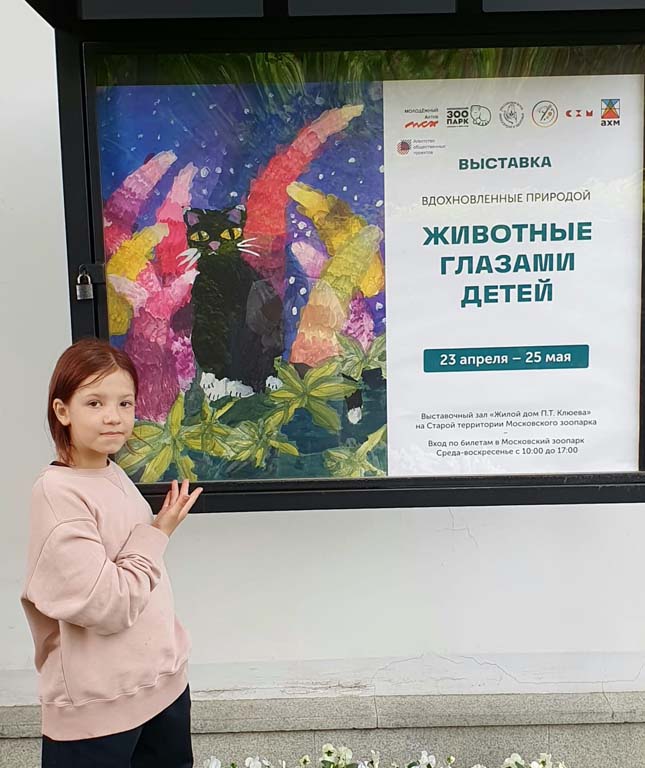 Выставка проходит с 20 апреля по 21 мая в Московском зоопарке, где работы детей представлены широкой аудитории.