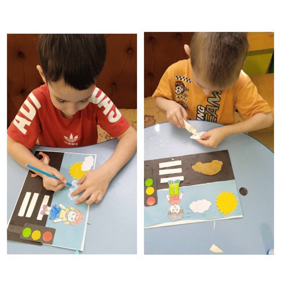 В ходе занятия ребята работали над аппликацией, им напомнили основные правила безопасности на дороге. Отметили важность соблюдения сигнала светофора и правильного перехода улицы. В завершении занятия дети с гордостью представили свои работы, рассказали какие правила дорожного движения они запомнили.