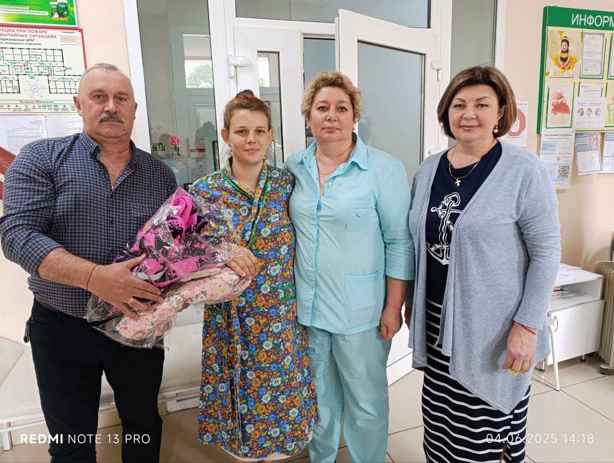 По уже сложившейся традиции, специалисты и директор Центра Сергей Иванович Борзенков поздравили многодетную маму в акушерском отделении ОБУЗ «Щигровско-Черемисиновской ЦРБ с рождением четвертого ребенка. Эта трогательная встреча стала ярким примером поддержки семейных ценностей и значимости многодетного родительства. Специалисты сердечно поздравили маму с важным и радостным событием в ее жизни. Рассказали о действующих мерах социальной поддержки многодетной семьи, включая различные пособия, льготы и программы, направленные на улучшение качества жизни и подарили подарки.