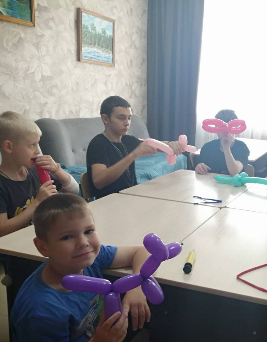 Воспитанники стационарного отделения — социальный приют для детей и подростков ОКУ «Щигровский центр социальной помощи семье и детям «Импульс» приняли участие в занимательном уроке по моделированию фигур из воздушных шаров.