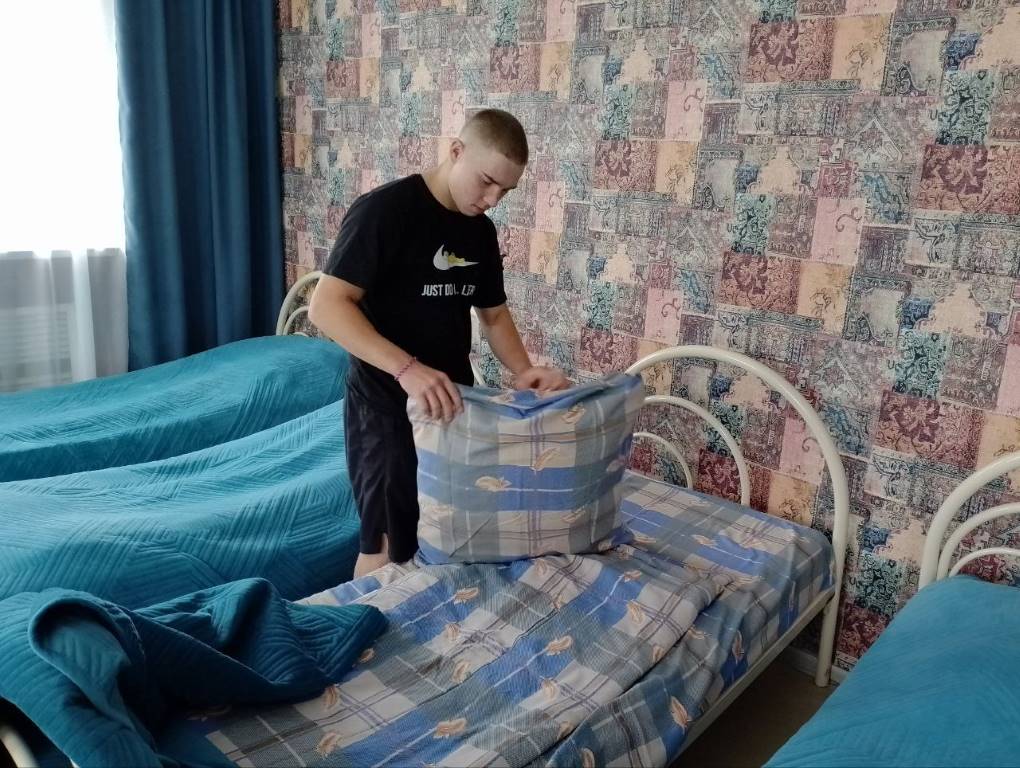 В стационарном отделении социального приюта для детей и подростков ОКУ «Щигровский центр социальной помощи семье и детям «Импульс» особое внимание уделяется практическим занятиям, которые помогают воспитанникам научиться основным навыкам самостоятельной жизни. Одним из таких направлений является обучение домоводству, в рамках которого дети выполняют ежедневные обязанности, такие как заправка кроватей и уборка комнат. Выполняя ежедневные обязанности, дети не только учатся навыкам самообслуживания, но и развивают трудолюбие и понимание важности порядка. Эти знания и умения станут важным вкладом в их будущую самостоятельную жизнь, помогая им адаптироваться в обществе.