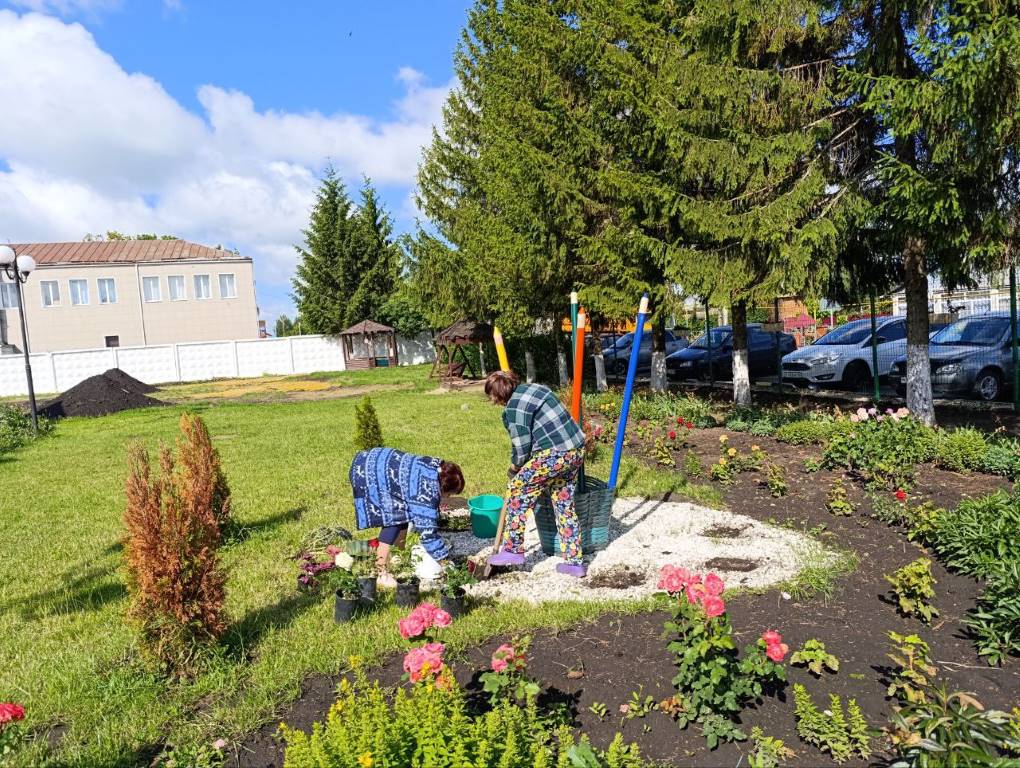 Специалисты Щигровского центра благоустраивают территорию Центра