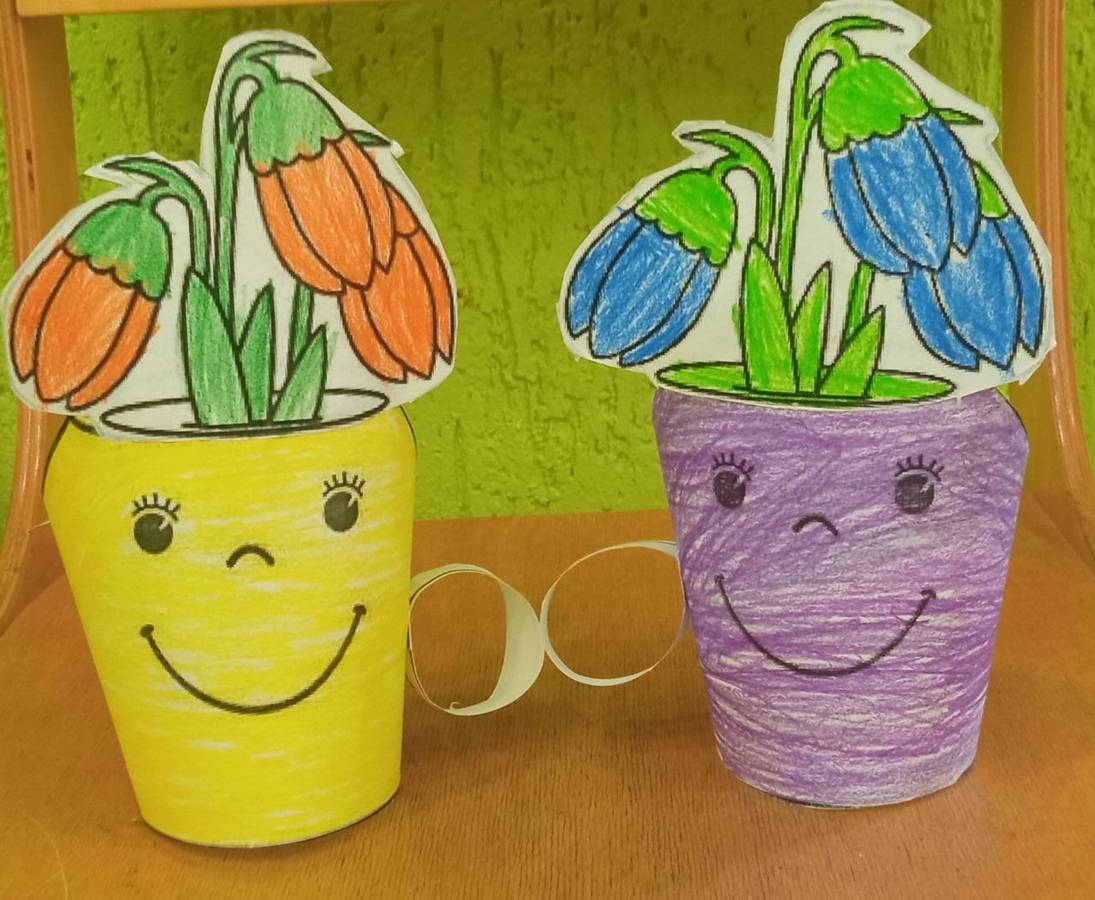 Воспитанники Щигровского центра создали аппликации «Цветы в чашке»